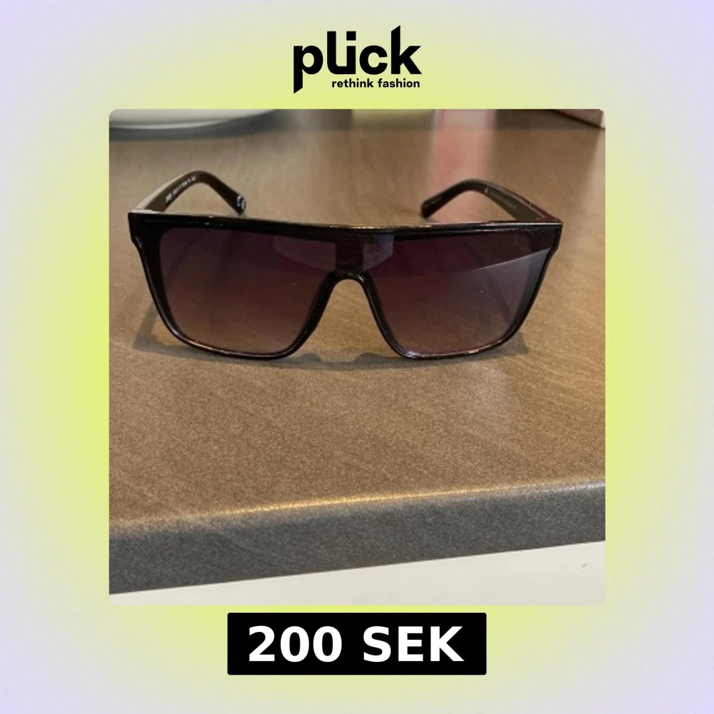 Snygga svarta solglasögon med bred, rak båge och stora, fyrkantiga linser i mörk ton. Riktigt trendig och futuristisk vibe, perfekt för dig som vill sticka ut. Bågarna är i blank plast och ger en cool statement-look.