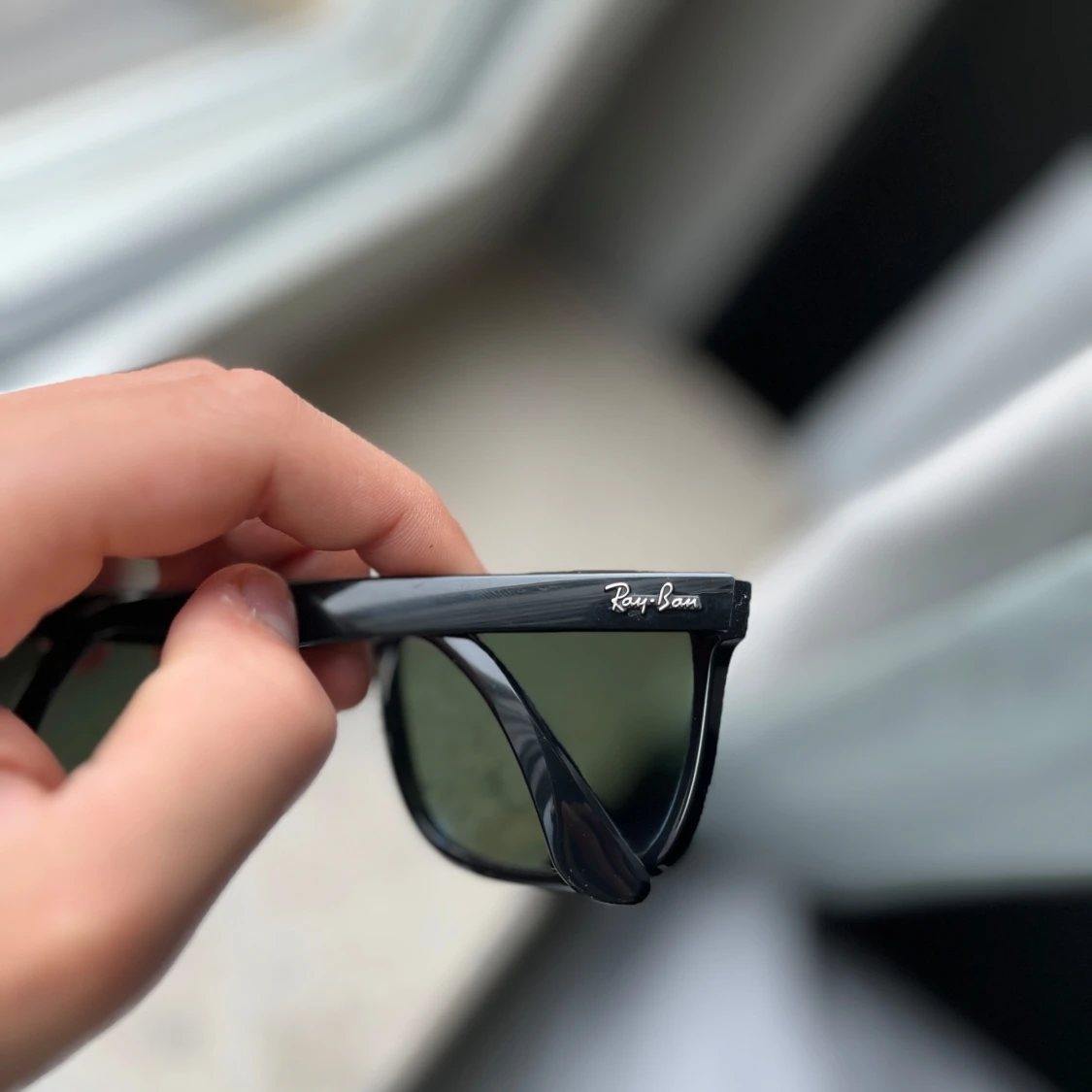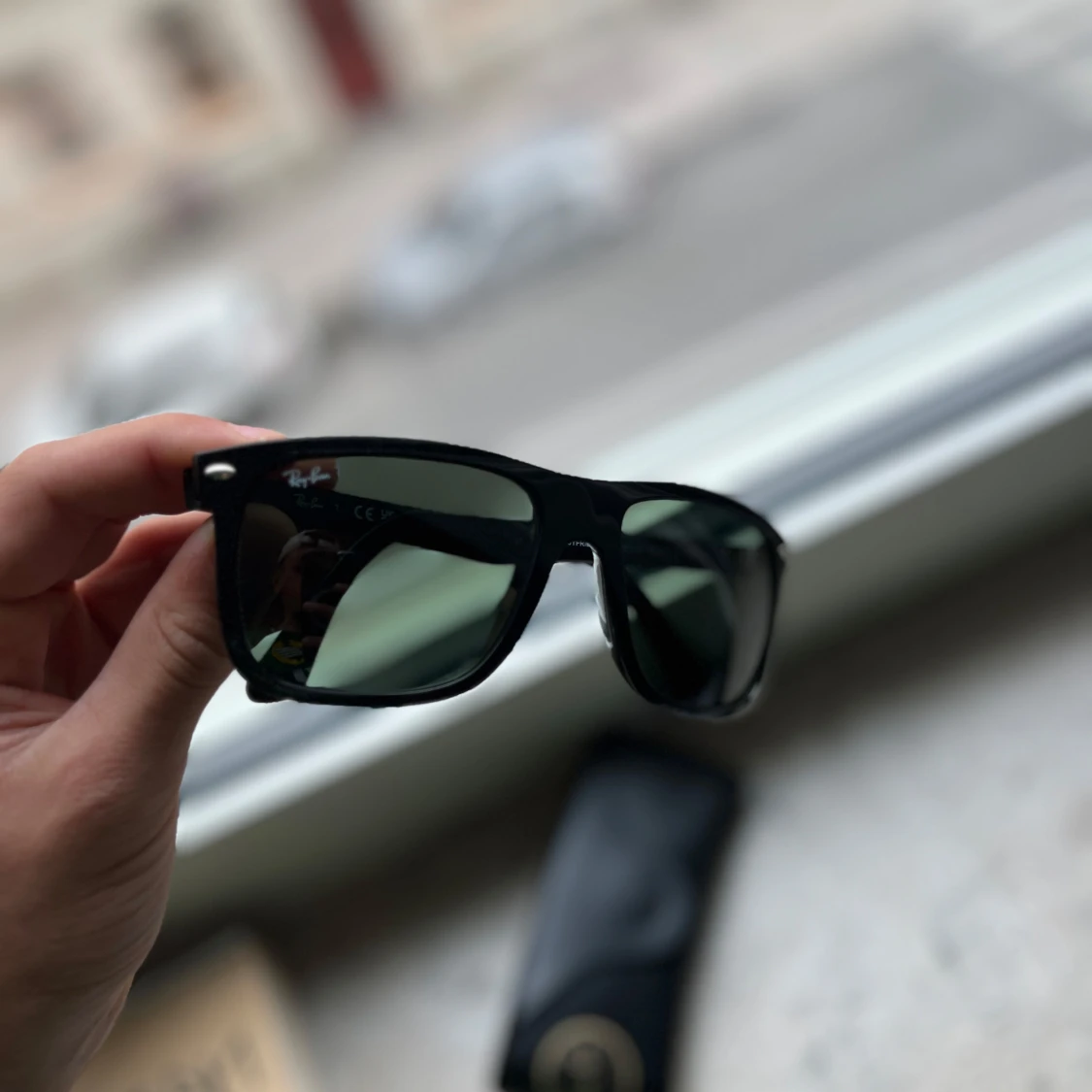 Helt nya svarta Ray-Ban Boyfirend solglasögon med polariserat glas och ikonisk logga på skalmen. Snygg, tidlös design med robust plastbåge. Kommer med original Ray-Ban-fodral. Perfekta för att lyfta din stil i solen.