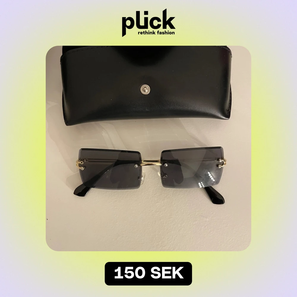 Snygga svarta rektangulära solglasögon med gulddetaljer och en stilren design. Perfekta för en cool look året runt. Kommer med ett elegant svart fodral för säker förvaring.