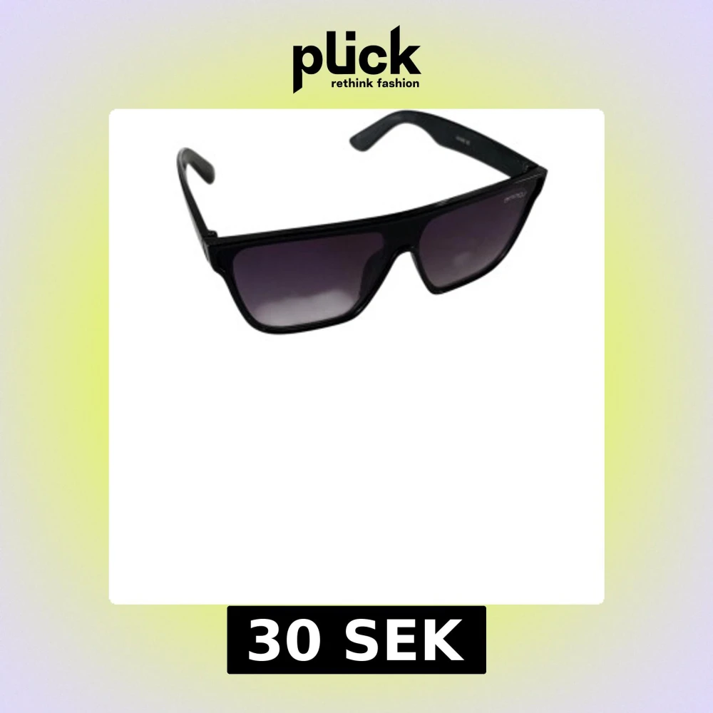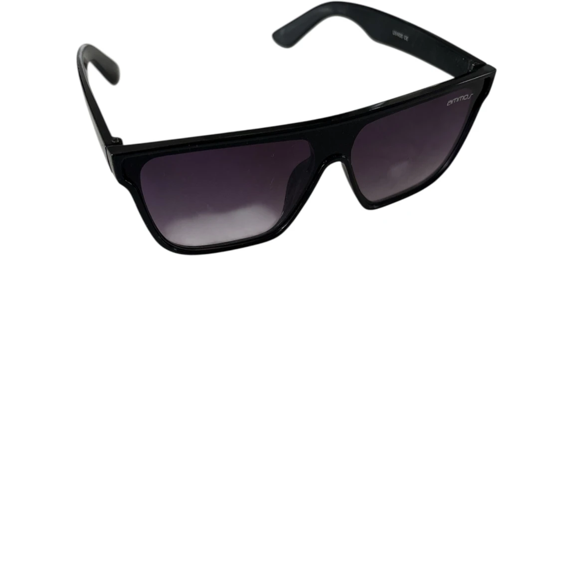 Snygga svarta solglasögon från Ammos med rektangulär form och mörka tonade glas. Bågarna är i blank plast och har en stilren vibe som passar perfekt till sommaren. Loggan syns på sidan för en extra touch.