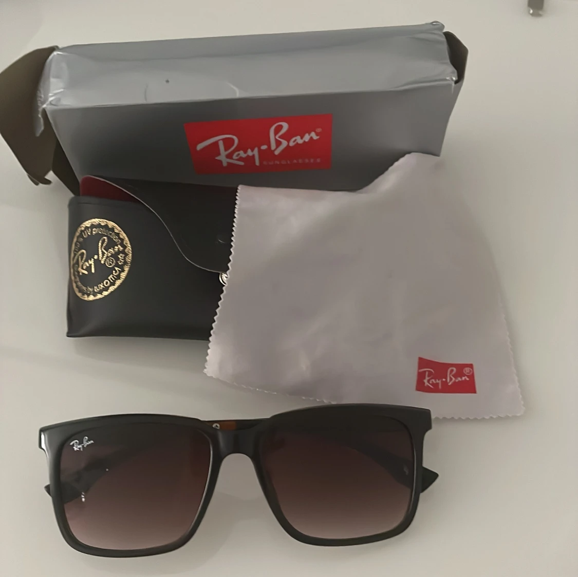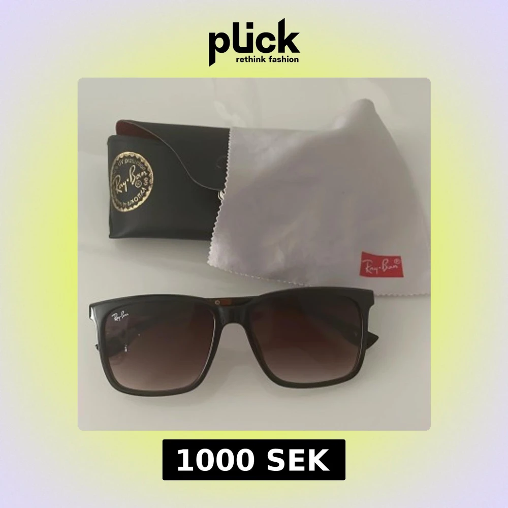 Stilrena svarta solglasögon från Ray-Ban med fyrkantig form och mörka tonade glas. Kommer med originalfodral, putsduk och förpackning. Perfekta för att ge en cool touch till din look.