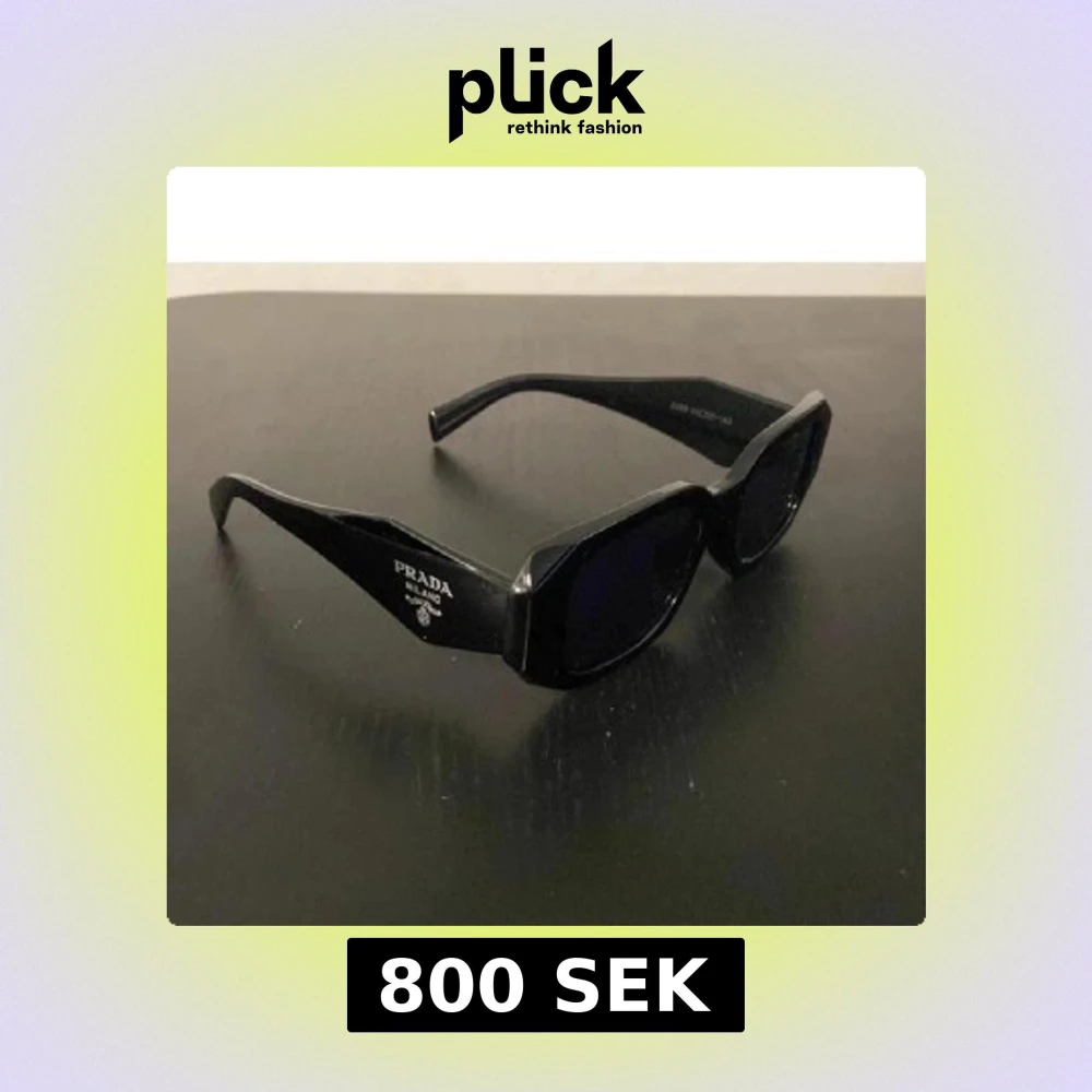 Snygga svarta solglasögon med markerade, breda skalmar och rektangulära bågar. Klassisk logga på sidan.