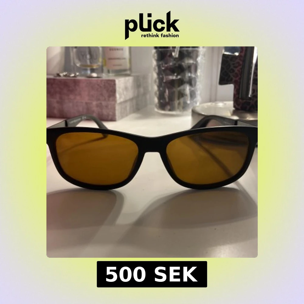 Snygga svarta solglasögon från Tommy Hilfiger med rektangulära bågar och mörkgula glas. Sidorna har en diskret röd detalj och logga. Lätta och stilrena, perfekta för att lyfta din look. Bra present till far, morfar/farfar eller till sig själv!