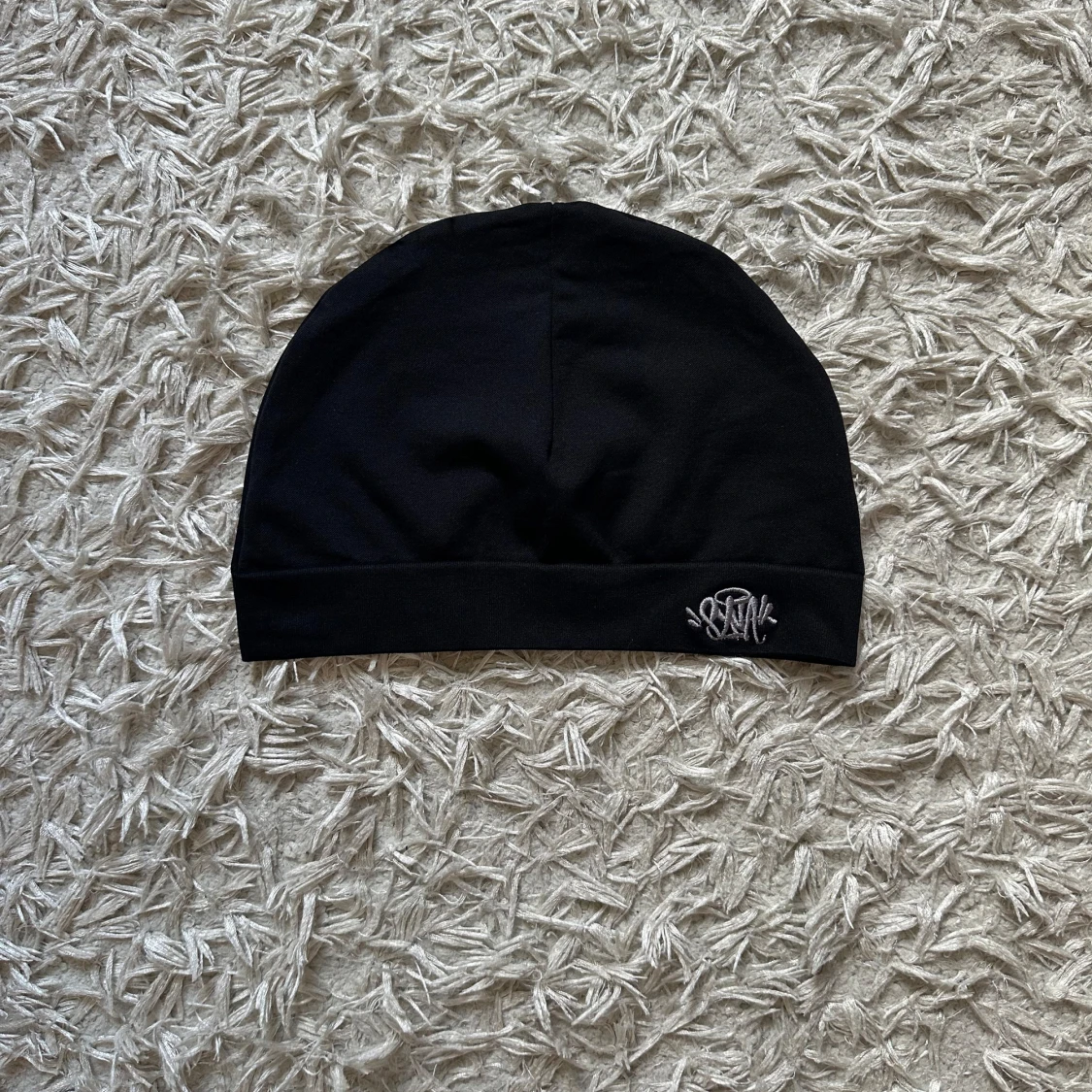 En stilren svart skullcap från SYNA med en broderad logga i vitt framtill. Mössan har en enkel och clean design med rundad form och bred kant nedtill. Perfekt för dig som gillar minimalistisk streetstyle. Materialet känns mjukt och stretchigt, troligen bomull eller polyester. Helt ny och oanvänd! Precis som mössa influencers såsom marlon har.