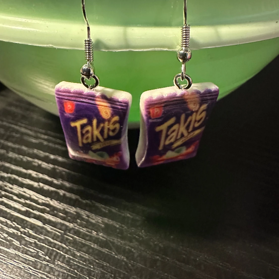 Nya örhänge med Takis. Krokarna är inköpta som nickelsäkra.