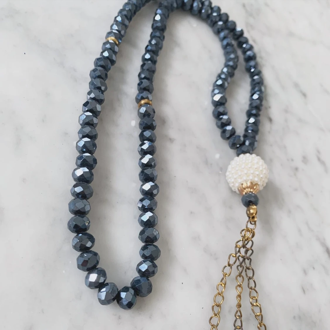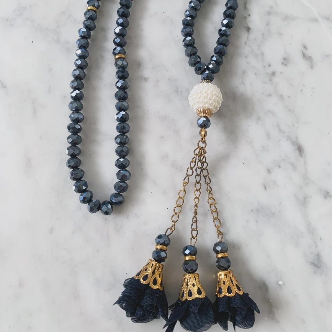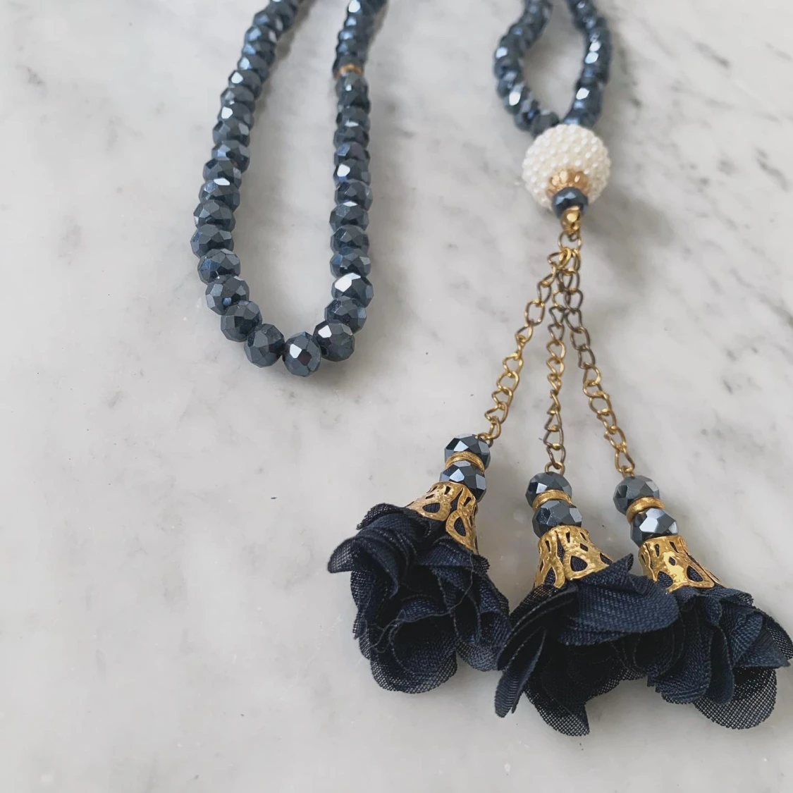 En väldigt lyxig Tasbeeh med vackra detaljer och blommor. Mörkgrå färg