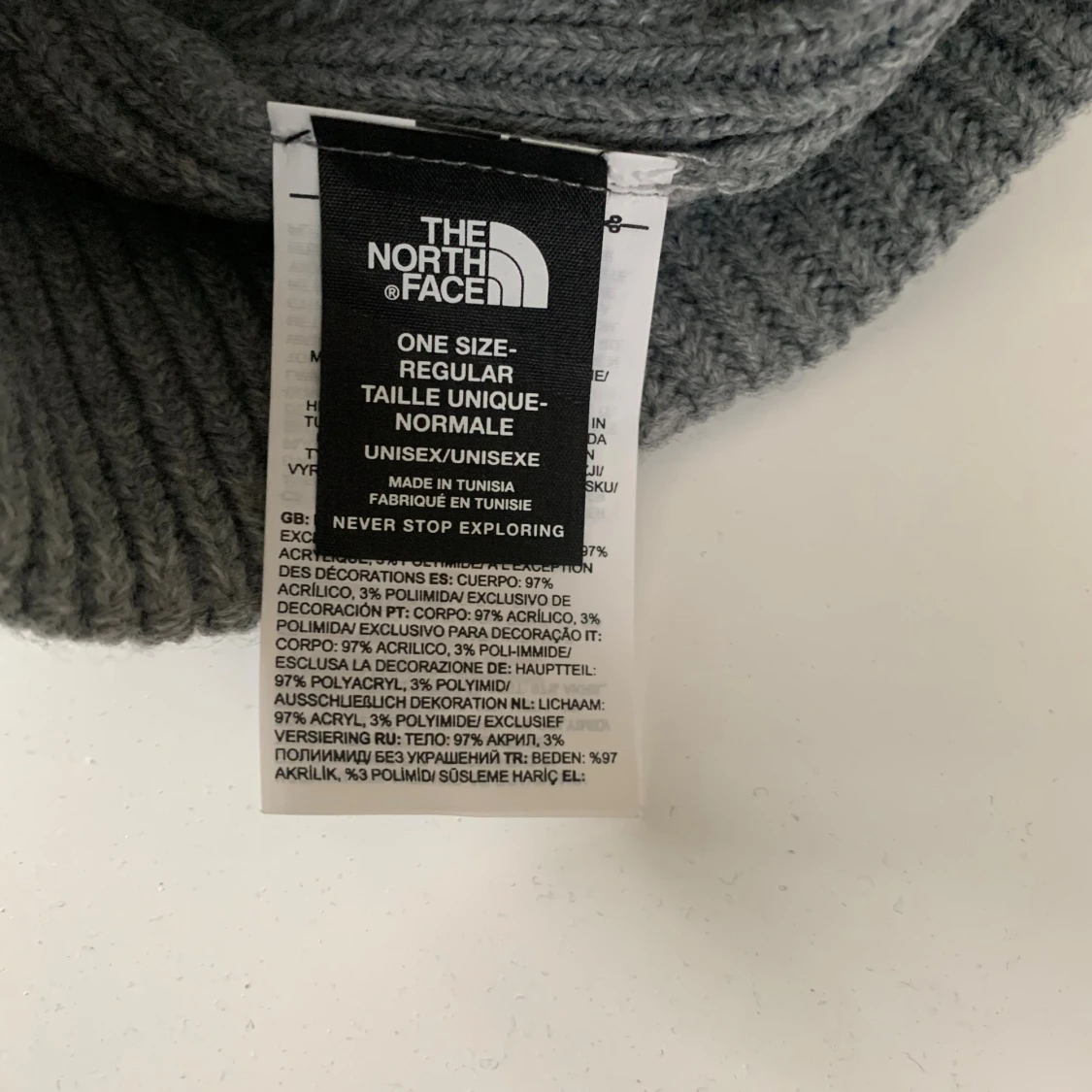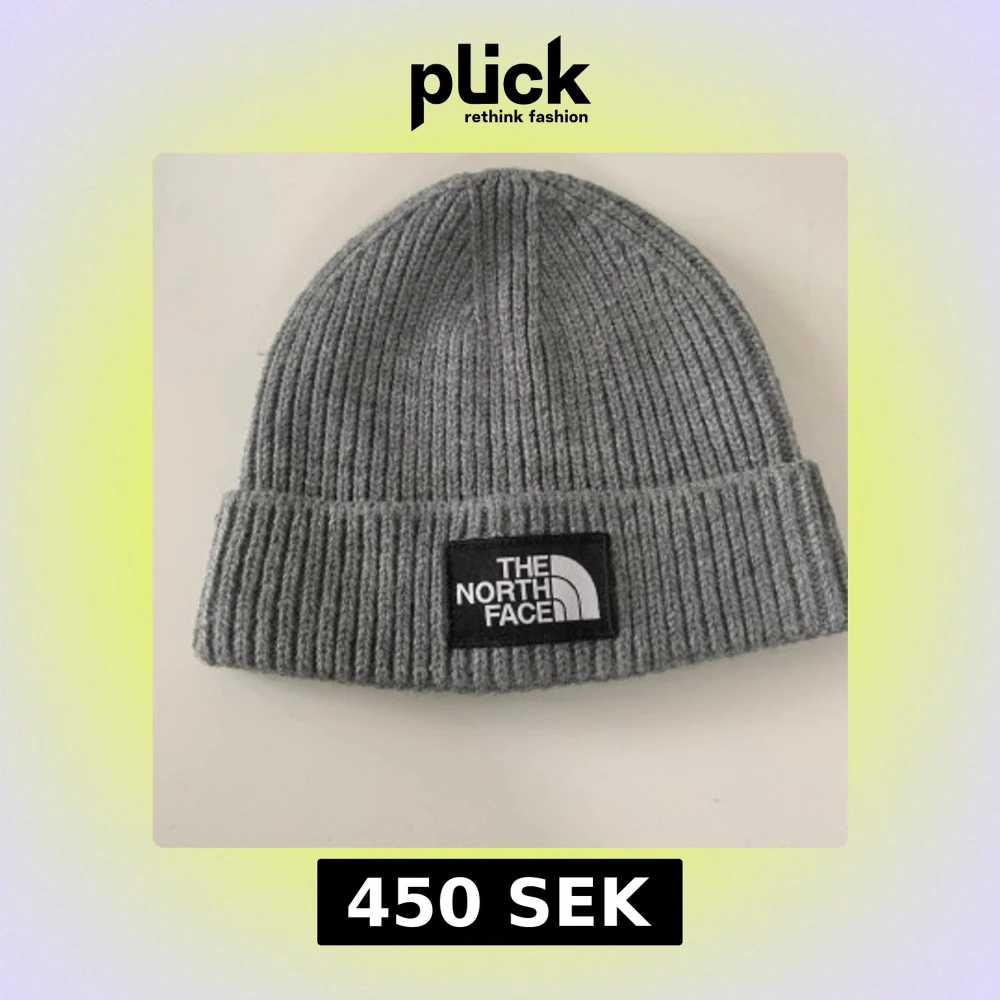 Säljer en grå ribbstickad mössa från The North Face. Klassisk modell med uppvikt kant och tydlig svart logotyp-patch framtill. Tillverkad i mjuk och stretchig syntetblandning som sitter skönt på huvudet. Perfekt för kalla dagar.