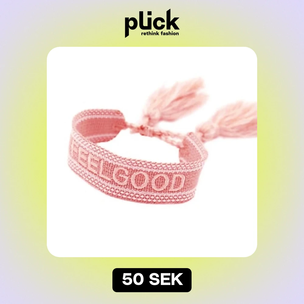 Säljer ett supergulligt rosa armband med texten 'FEEL GOOD'. Armbandet är flätat och har tofsar i ändarna för en bohemisk touch. Perfekt för att ge lite färg till din outfit!