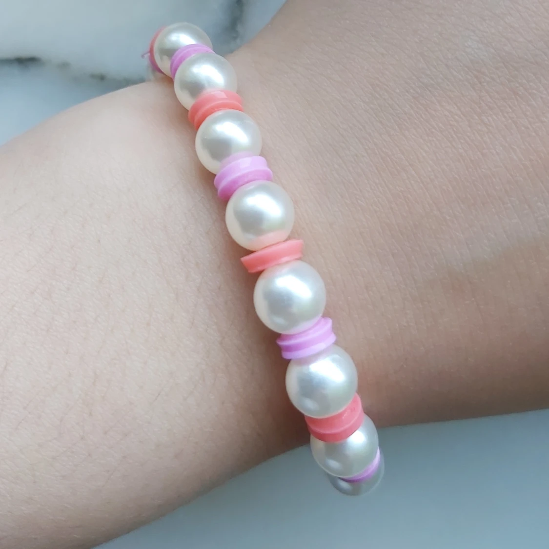 Armband med vita och rosa pärlor!🌿💍 kontakta mig vid intresse🥝