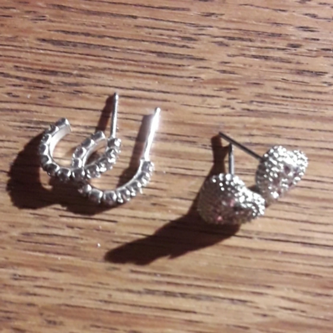 2 stora örhängen,2 medium örhängen,2 hjärtan med 5 rosa stenar på,2 Tomas sabo örhängen med stenar,ett armband med stenar