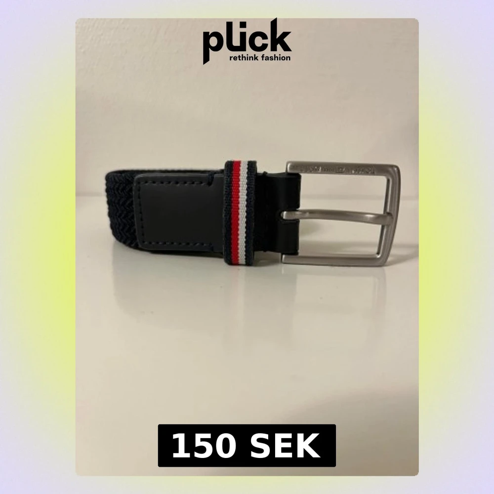 Riktigt snyggt flätat bälte från Tommy Hilfiger i svart men är väldigt mörk blå igenterligen. Metall spänne och en detalj i rött, vitt och blått.