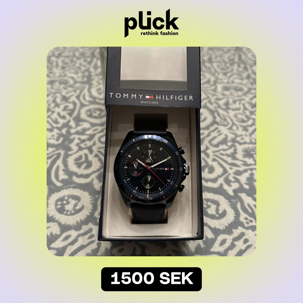 Säljer en stilren Tommy Hilfiger herrklocka med blå urtavla och svart läderarmband. Klockan har tre subdials och silverfärgade visare med röda detaljer. Perfekt för både vardag och fest. Kommer i originalförpackning. Är också oanvänd.
