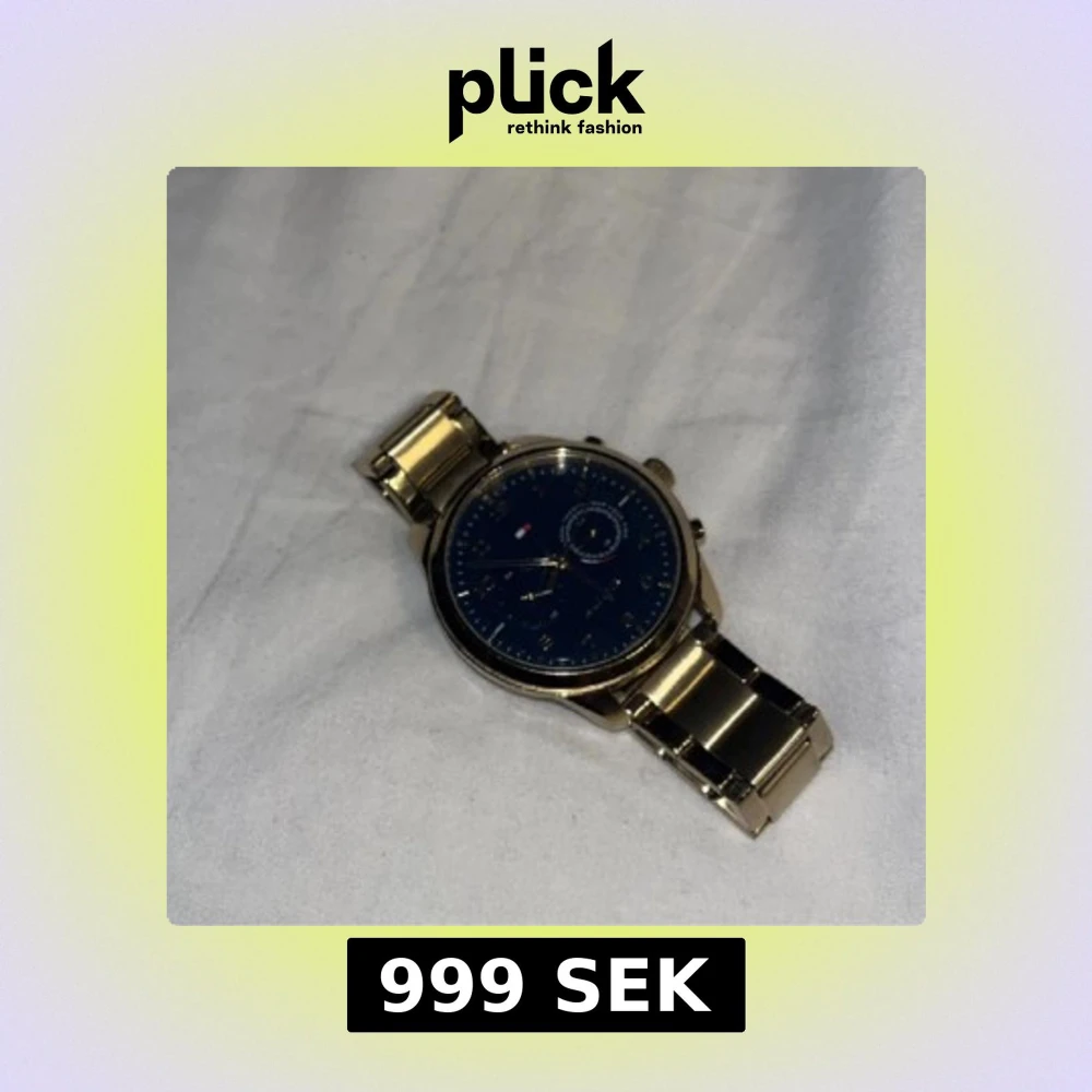 Snygg guldfärgad klocka från Tommy Hilfiger med en stilren blå urtavla. Klockan har en metallarmband och flera små urtavlor för extra funktionalitet. Perfekt för den som vill ha en elegant accessoar. Batteriet är dock slut till salu