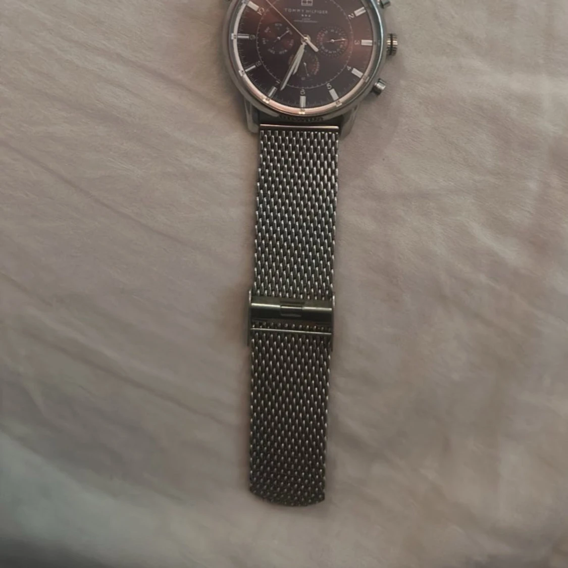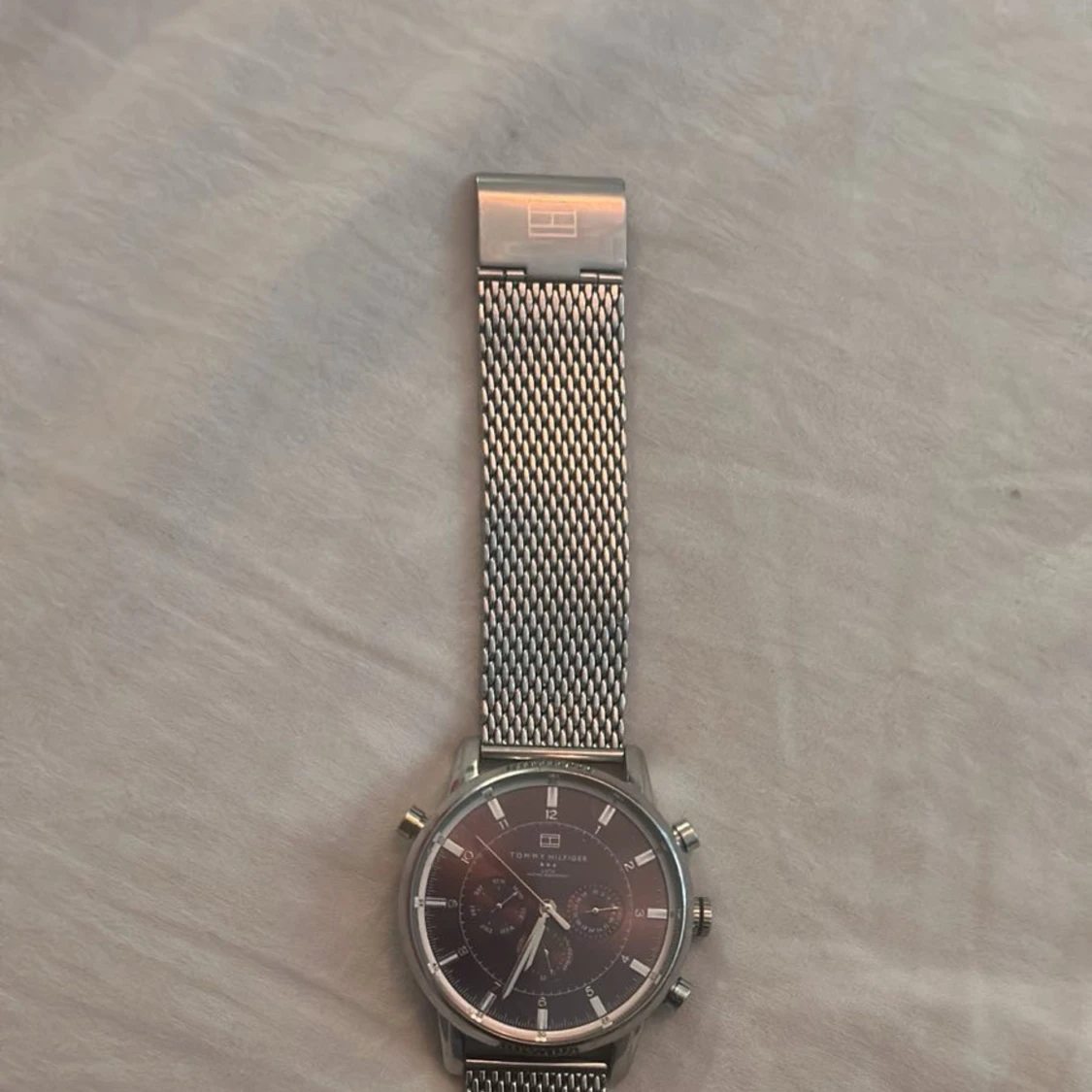 Stilren herrklocka från Tommy Hilfigher med svart urtavla och silverfärgat mesharmband i metall. Klockan har tre små urtavlor och tydliga markeringar. Perfekt accessoar för dig som gillar klassisk design.