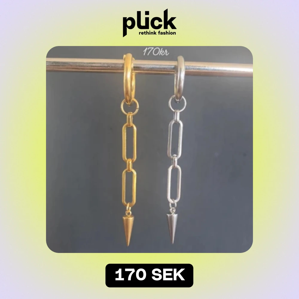 Stilrena örhängen och halsband  - Stilrena örhängen och halsband inspirerade av Maria Nilsdotter. Material-rostfritt stål. Örhängen längd-3,7cm, halsband längd-40cm. ☝️Vid köp ingår två extra berlocker som kan bytas ut, då själva hänget är ömtåligt och känsligt för stötar.