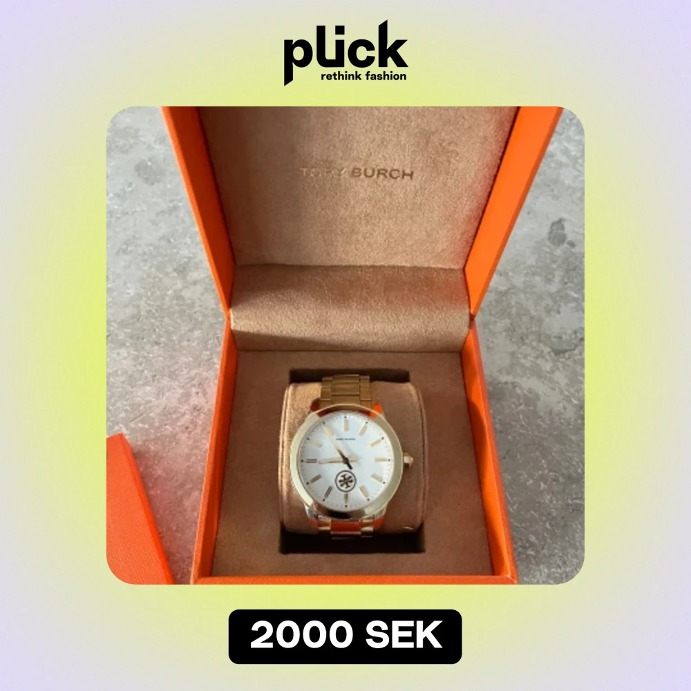 Tory Burch klocka, guldfärgad stålarmband, urtavla 40 mm. Fint skick, lite skavd på ena sidan av armbandet. Extra armbandsdelar samt original box följer med. Batteribyte behöver göras. Nypris ca 4000 kr.