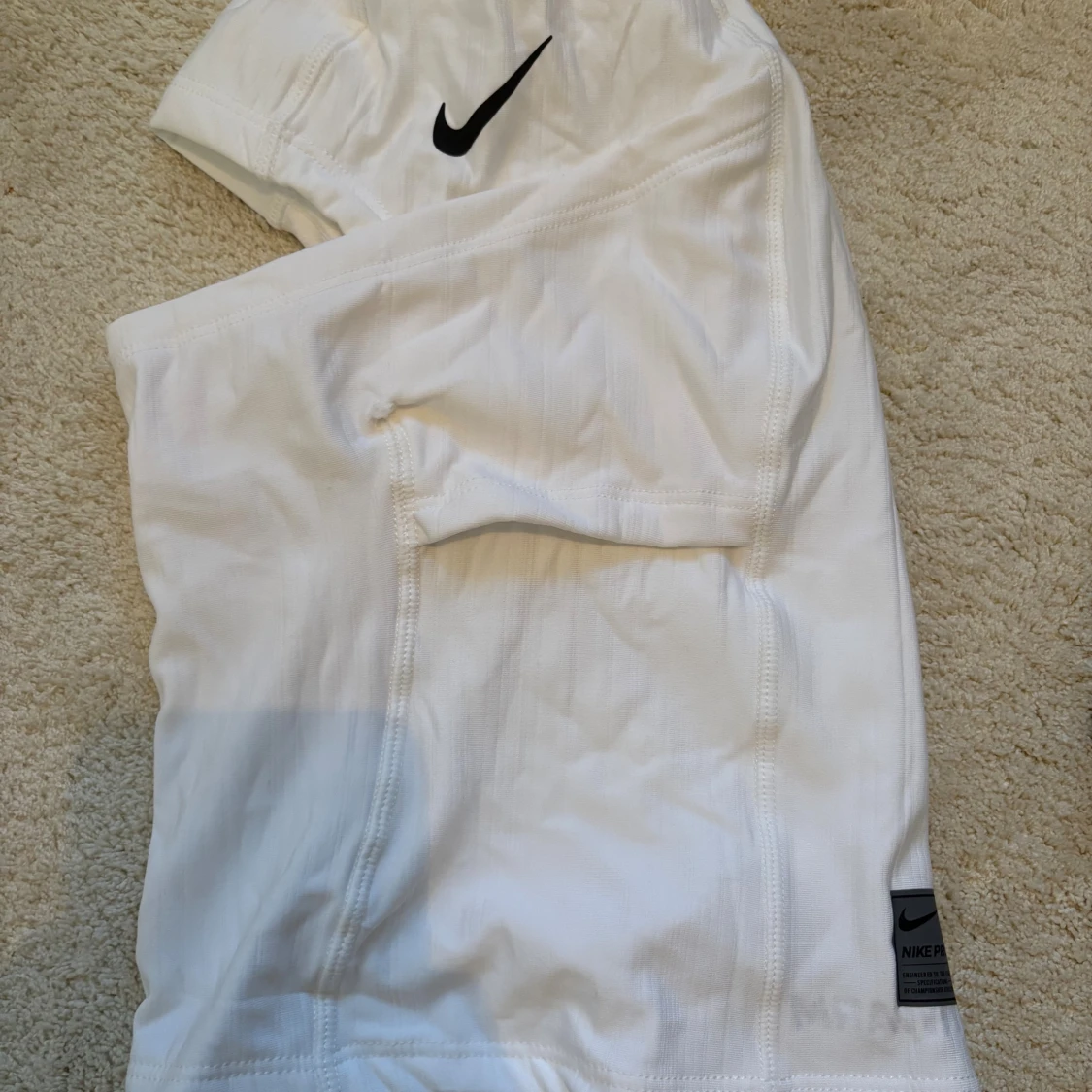 Nike Pro Therma-FIT Hood i vitt, perfekt för fotbollsträning. Huvan är tillverkad i mjukt och stretchigt syntetmaterial som håller dig varm. Snygg svart Nike-logga framtill och diskret Nike Pro-märke på sidan. Slimmad passform som sitter tajt runt huvudet.
