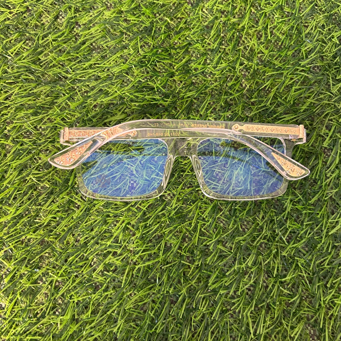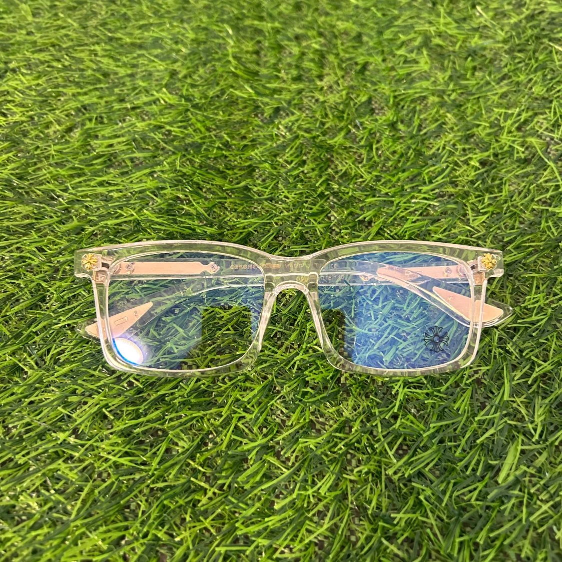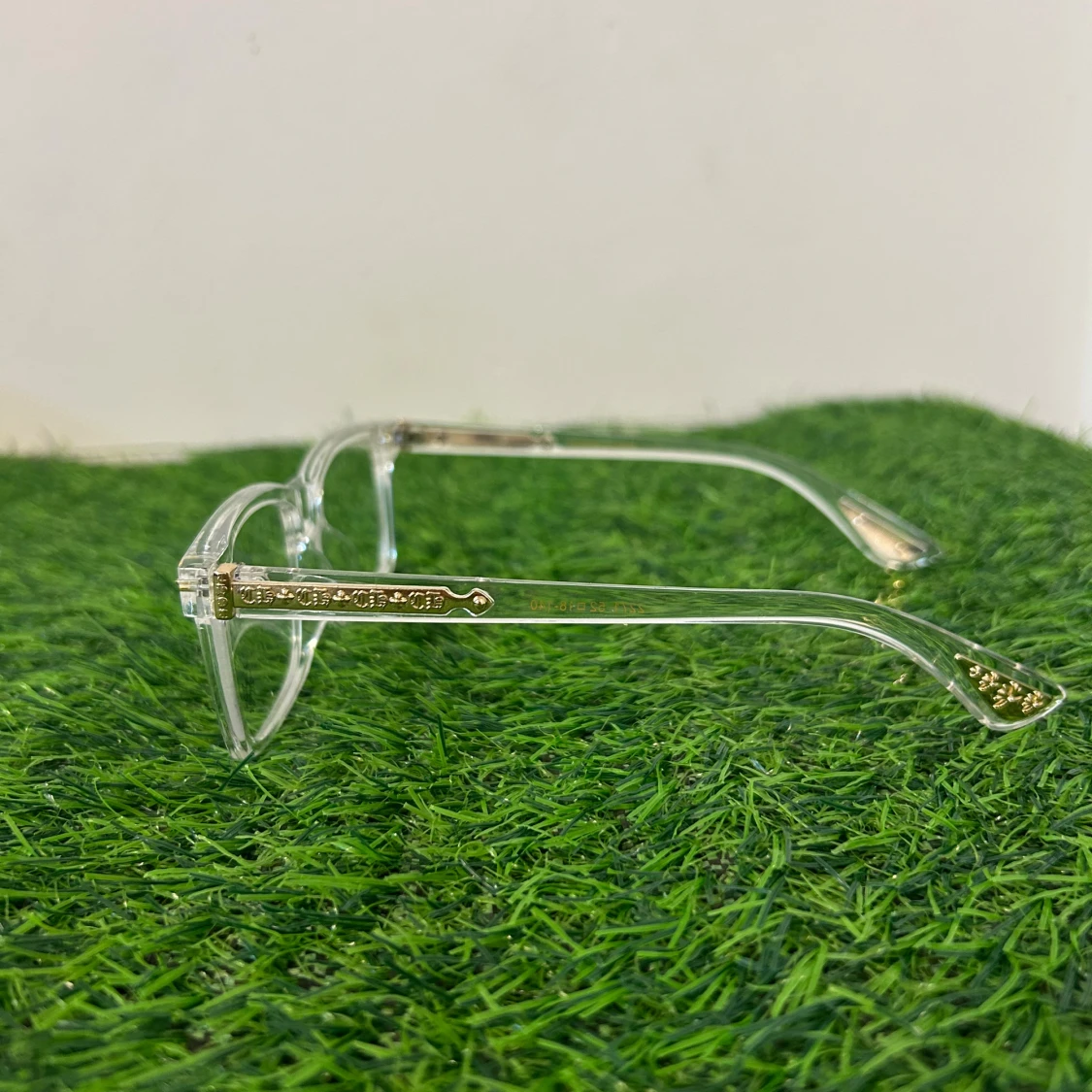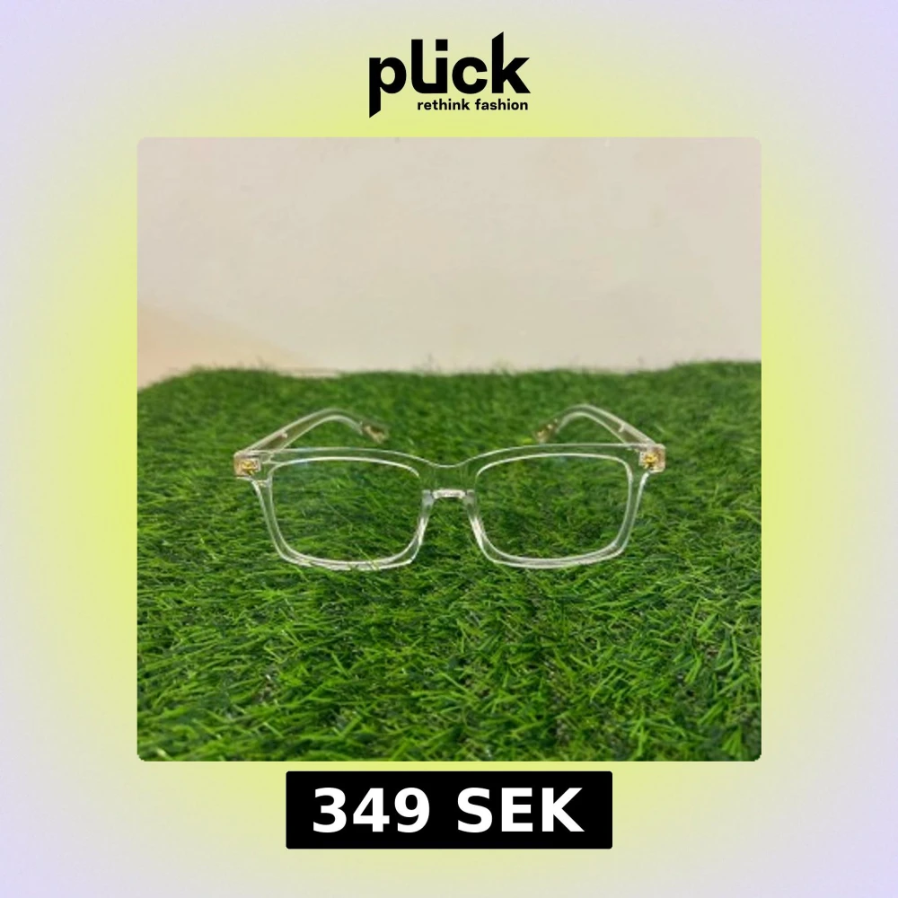 Stilrena glasögon med transparent fyrkantig båge och snygga gulddetaljer på skalmarna. Ramen är i plast och har en modern, minimalistisk look som passar till de flesta outfits. Perfekt accessoar för dig som vill ha en clean och trendig vibe.