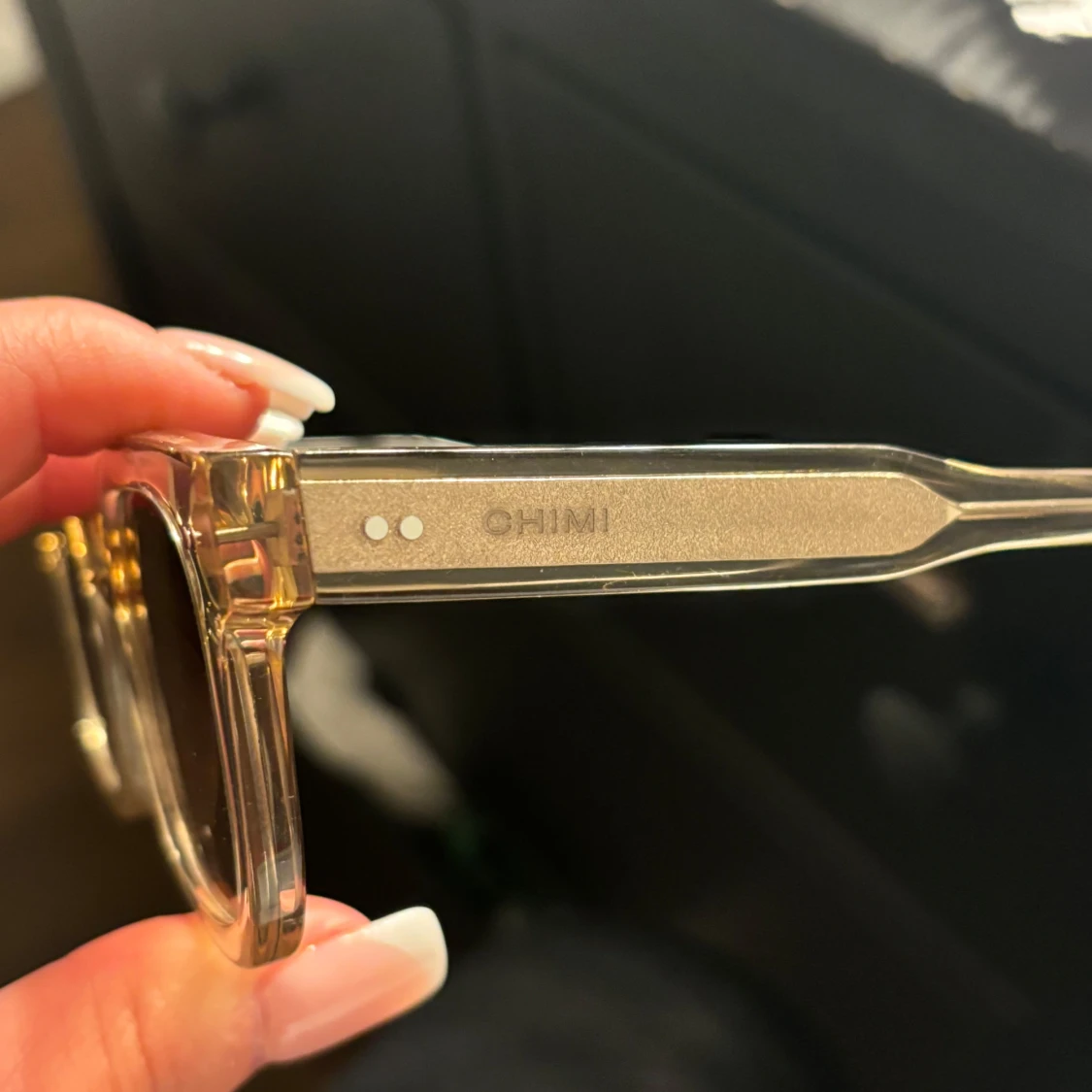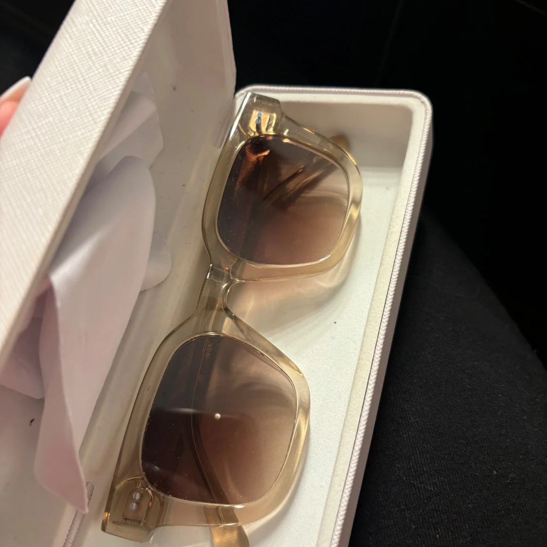 Snygga transparenta solglasögon från CHIMI med en fyrkantig form och bruna tonade linser. I modellen 04 färg Ecru, jättefint skick💓