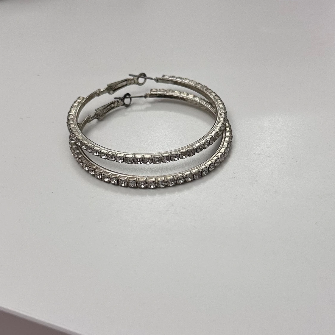 Silvriga örhängen med fina stenar!! Rengör alla smycken innan jag skickar dem!!