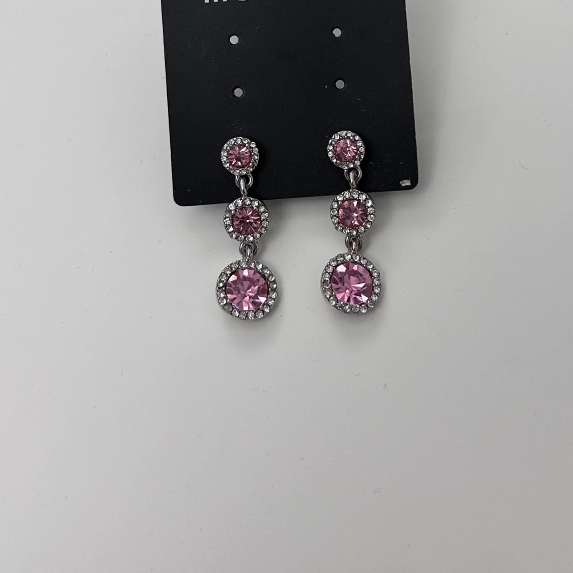 Jättefina örhängen med fina rosa och silver stenar!! Aldrig använda!
