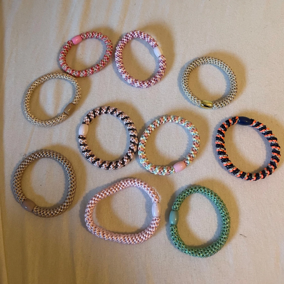 Säljer ett set med tio hårsnoddar i olika färger och mönster. Perfekta för att mixa och matcha till din stil!