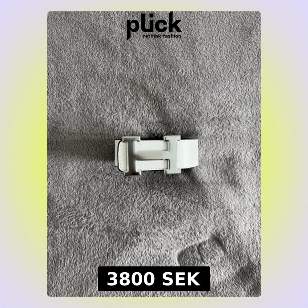 Säljer ett vändbart Hermès bälte med klassiskt H-spänne i silver. Ena sidan är vit och andra svart, båda i präglat skinn. Bältet är stilrent och passar perfekt till jeans eller kostymbyxor. Bredden är 3,2 cm och längden 115 cm. Snygg accessoar för att lyfta din outfit.