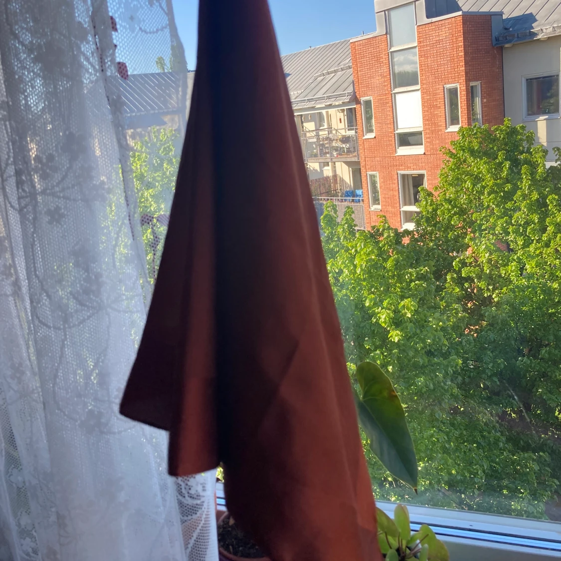 Så snygg brun sjal som man kan ha som topp eller i håret! Färgen syns bäst på första bilden. Den är 67x67 cm. Den har två inte så synliga fläckar som är små och enkla att dölja☺️ köparen står för frakten💕