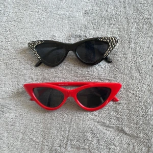 Vanliga solglasögon (cat eye). Röda och svarta. Mycket bra kvalitet då jag är osäker på om de nånsin blivit använda😅