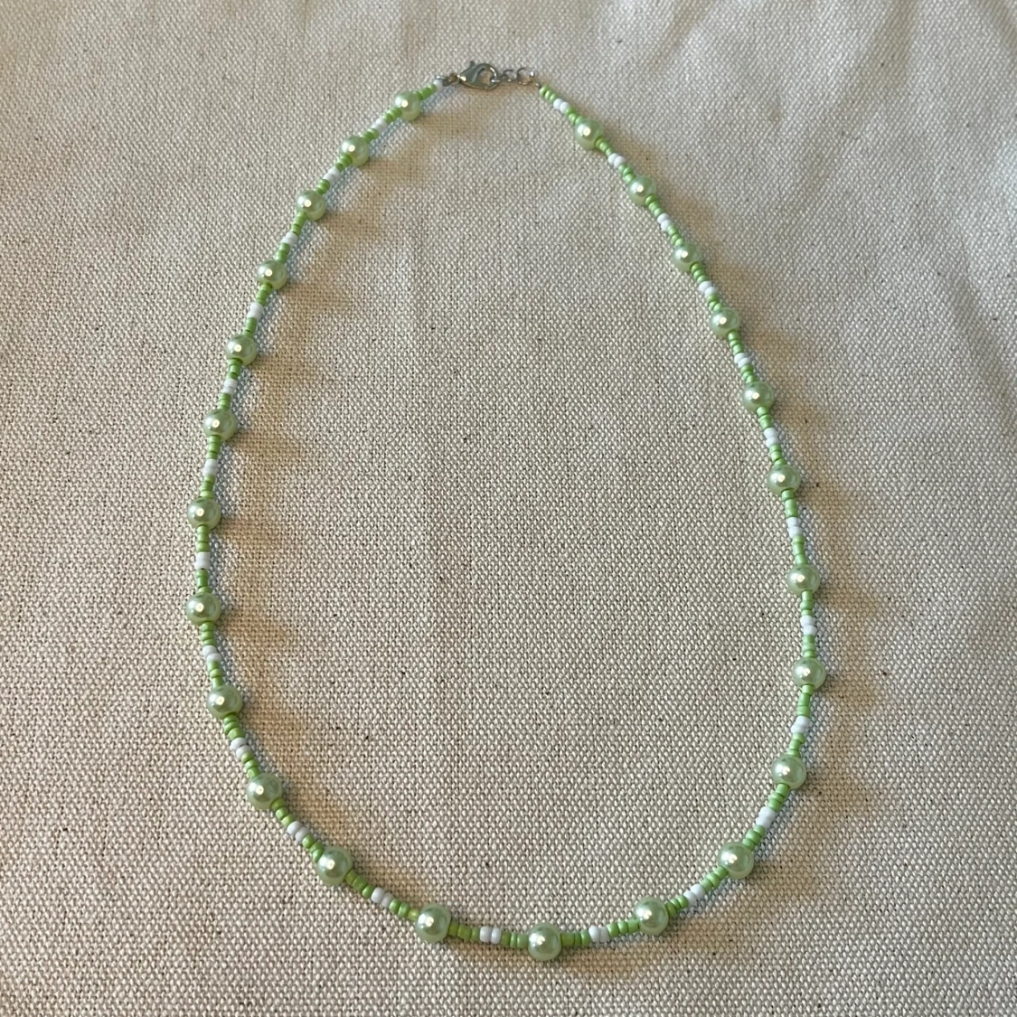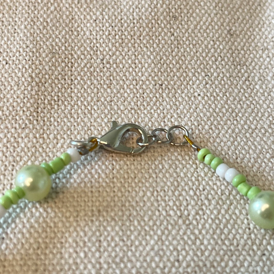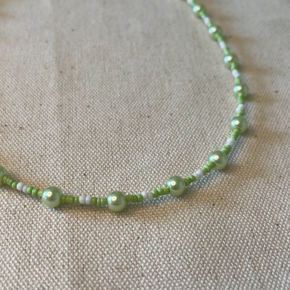 Superfint handgjort grönt och vitt pärlhalsband!🌿 längd: ca 49cm