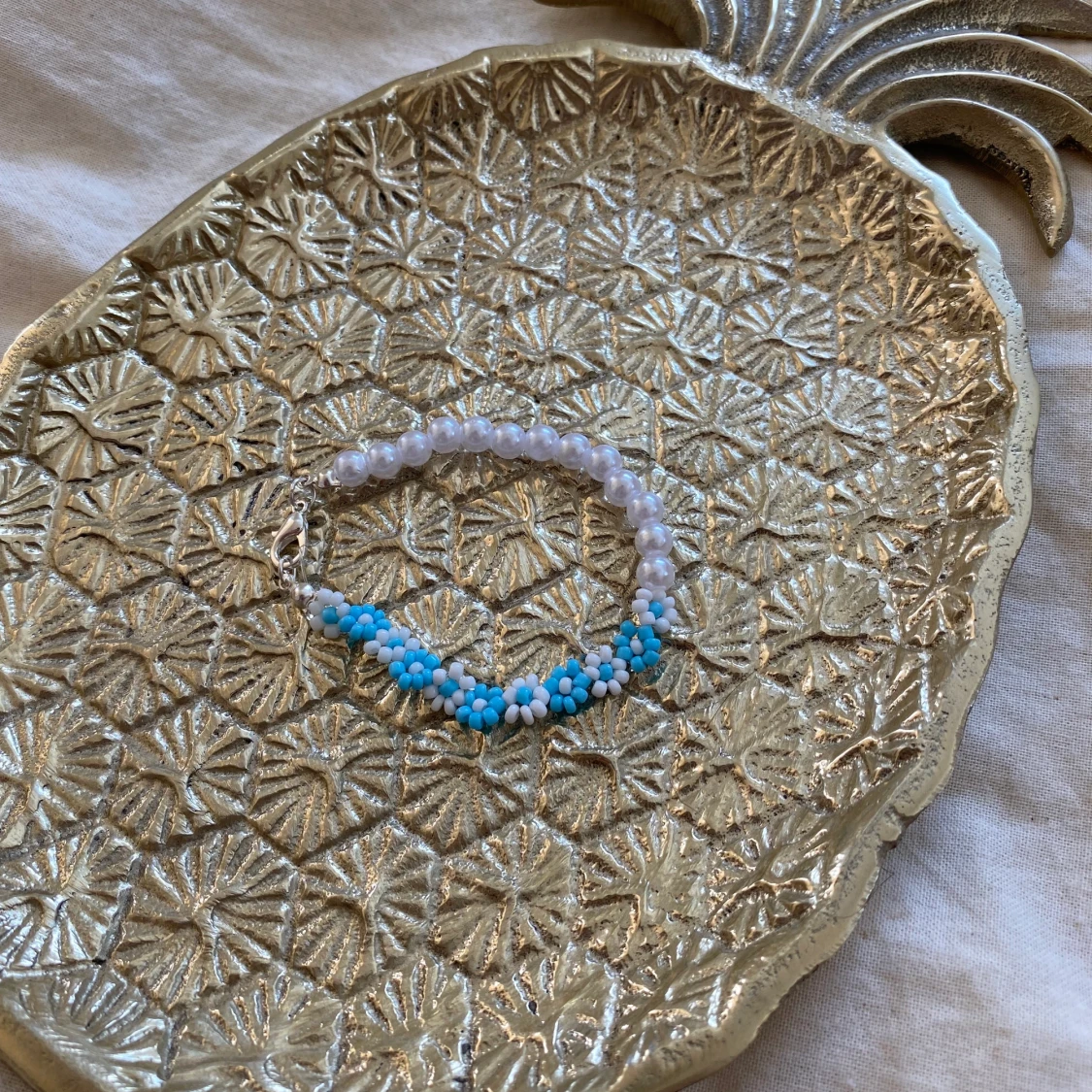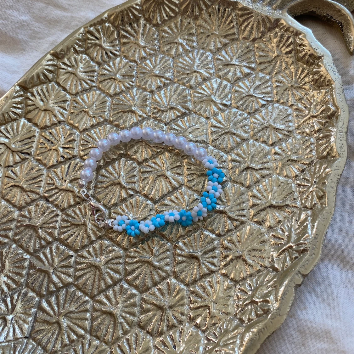 Jättefint blått blomarmband! (Frakten är ej spårbar och kostar 15kr) Skriv vid intresse!💗