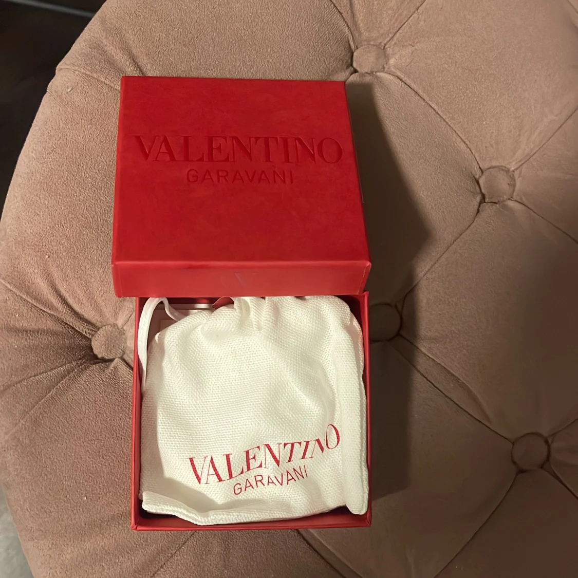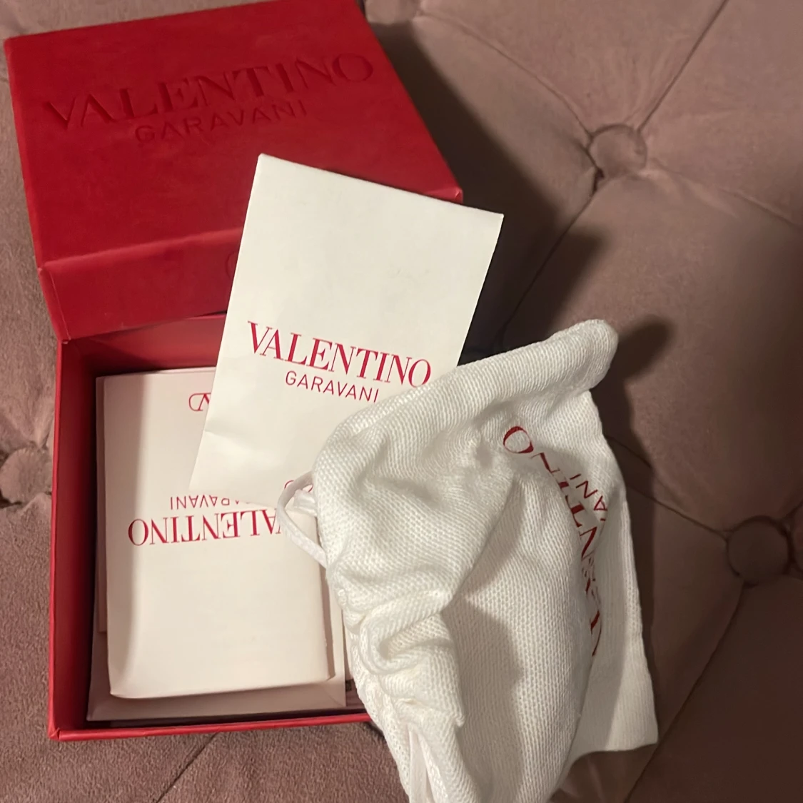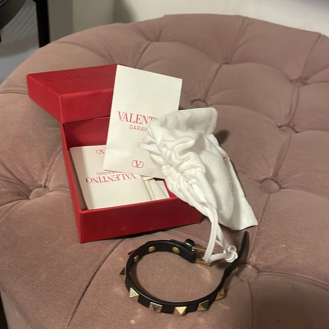 Snyggt svart armband från Valentino Garavani med ikoniska pyramidformade nitar i guld☺️, Armbandet är gjort i skinn och har ett coolt, edgy uttryck med guldfärgade detaljer och spänne. Kommer med original ask och dustbag.Använt fåtal gånger, säljer då jag inte använder den💓