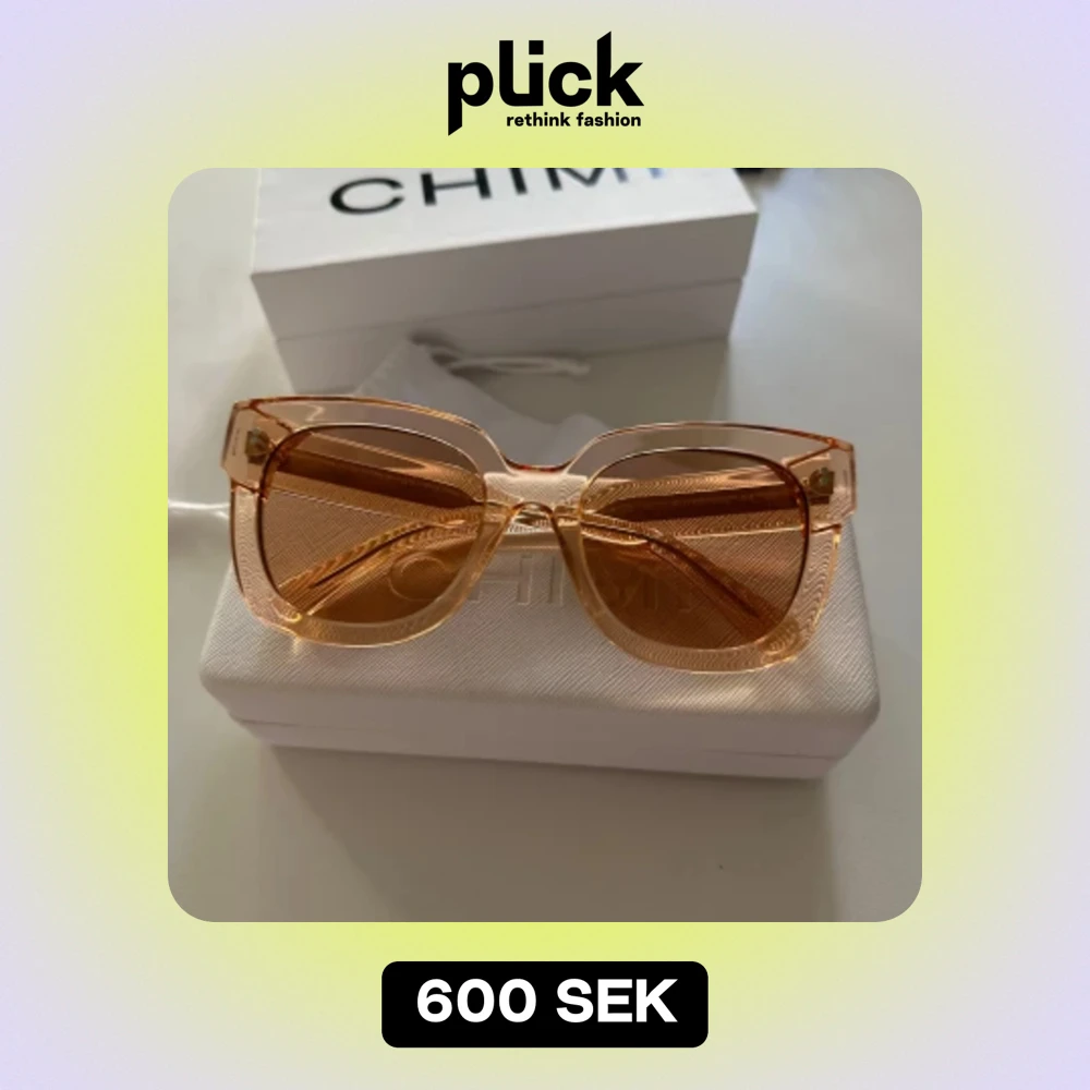 Ett par stilrena och moderna glasögon från CHIMI med transparenta bågar i en ljus orange/rosa färg! Helt oanvända och kommer med alla tillbehör! Modellen 08, och därav den största modellen!❤️