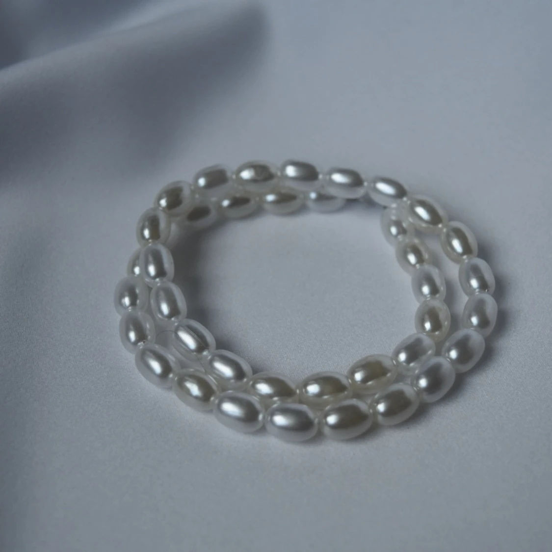 Väldigt fint och simpelt halsband med vita ovala stora pärlor- Halsbandet är 40cm. Tillkommer spänne och ringödlor som gör att halsbandet kan justeras efter önskad storlek.