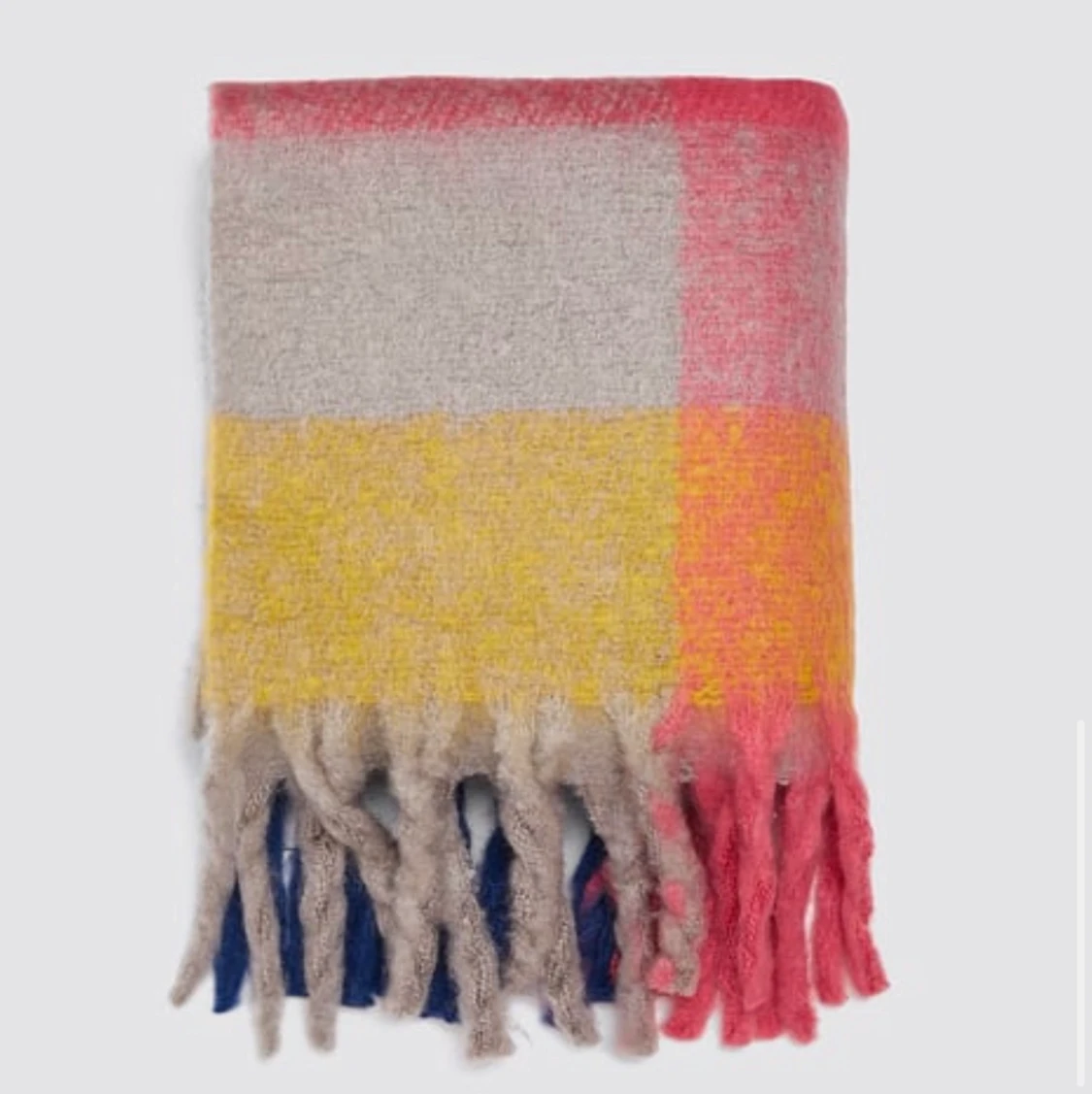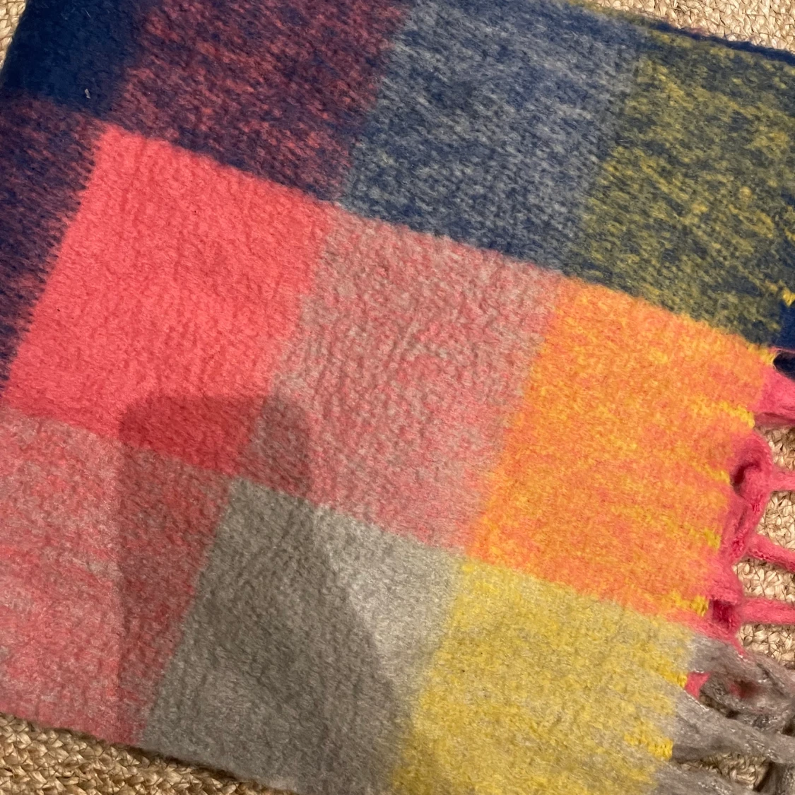 Rutig halsduk med fransar, stor och mysig nu i höst. Köpt på zara. Använd 1-2 gånger. Kan fraktas