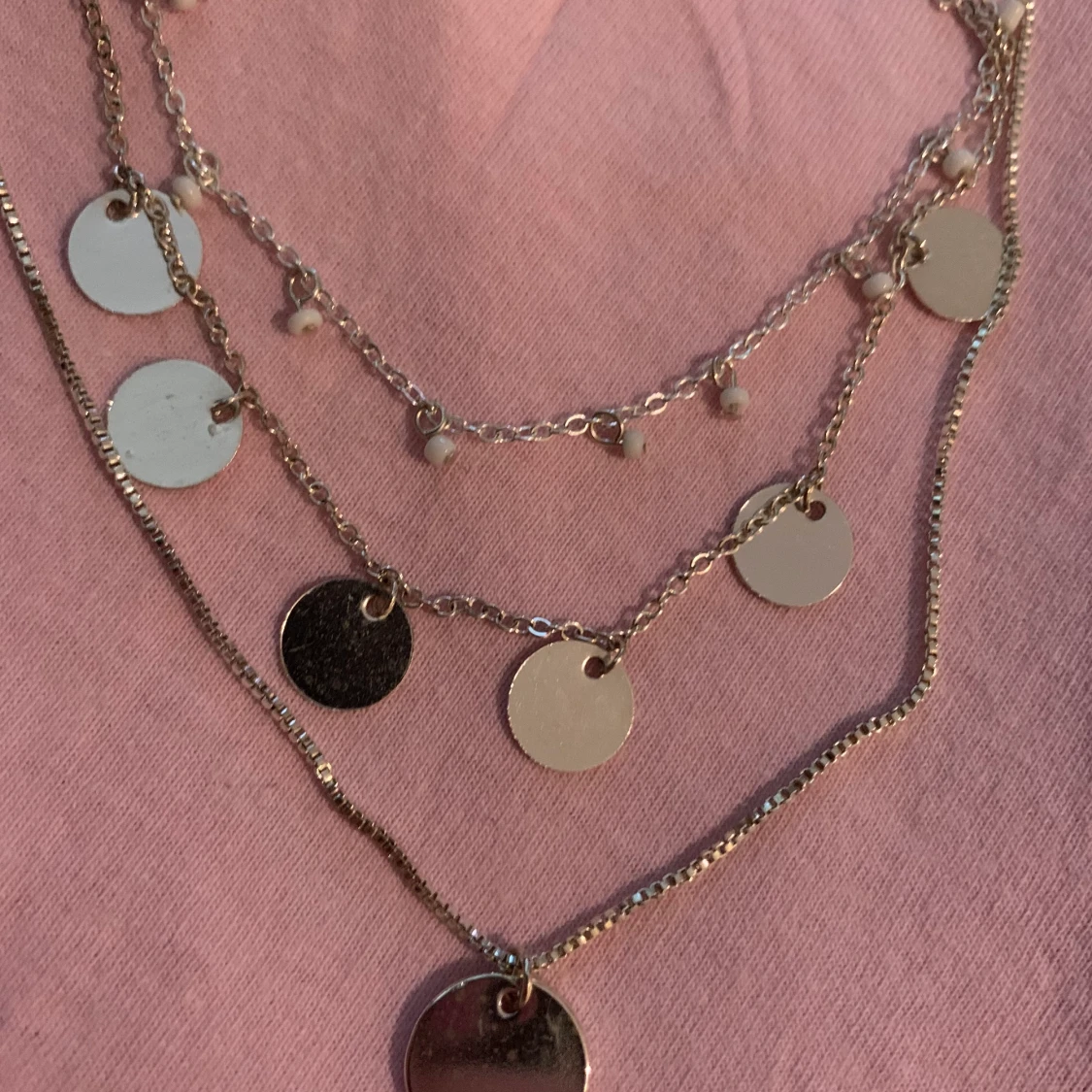 Guldiga halsband med droppformade pärlor - Matchande örhängen finns i en separat annons  Finns även i silverfärg   Material: 14k guldplätering på rostfritt stål Bredd: 6mm Längd: 42-50cm Nickelfria och handgjorda.