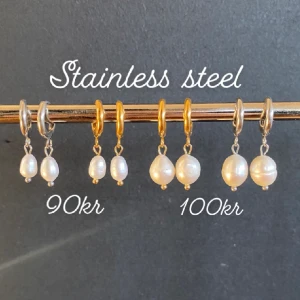 Silvrigt halsband med droppformade pärlor. - Elegant halsband i rostfritt stål – finns även i en guldpläterad variant. Matchande örhängen finns i en separat annons. Smycket är 9 mm brett och har en justerbar längd mellan 38–43 cm, vilket gör att det passar perfekt oavsett stil och tillfälle. De nickelfria och handgjorda.