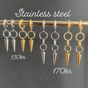 örhängen och halsband  - Stilrena örhängen och halsband inspirerade av Maria Nilsdotter. Material-rostfritt stål. Örhängen längd-3,7cm, halsband längd-40cm. ☝️Vid köp ingår två extra berlocker som kan bytas ut, då själva hänget är ömtåligt och känsligt för stötar.