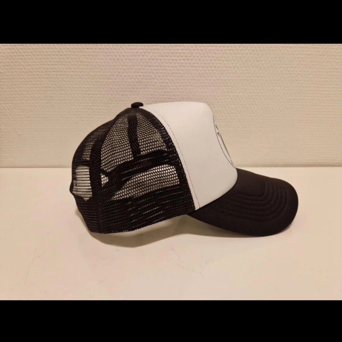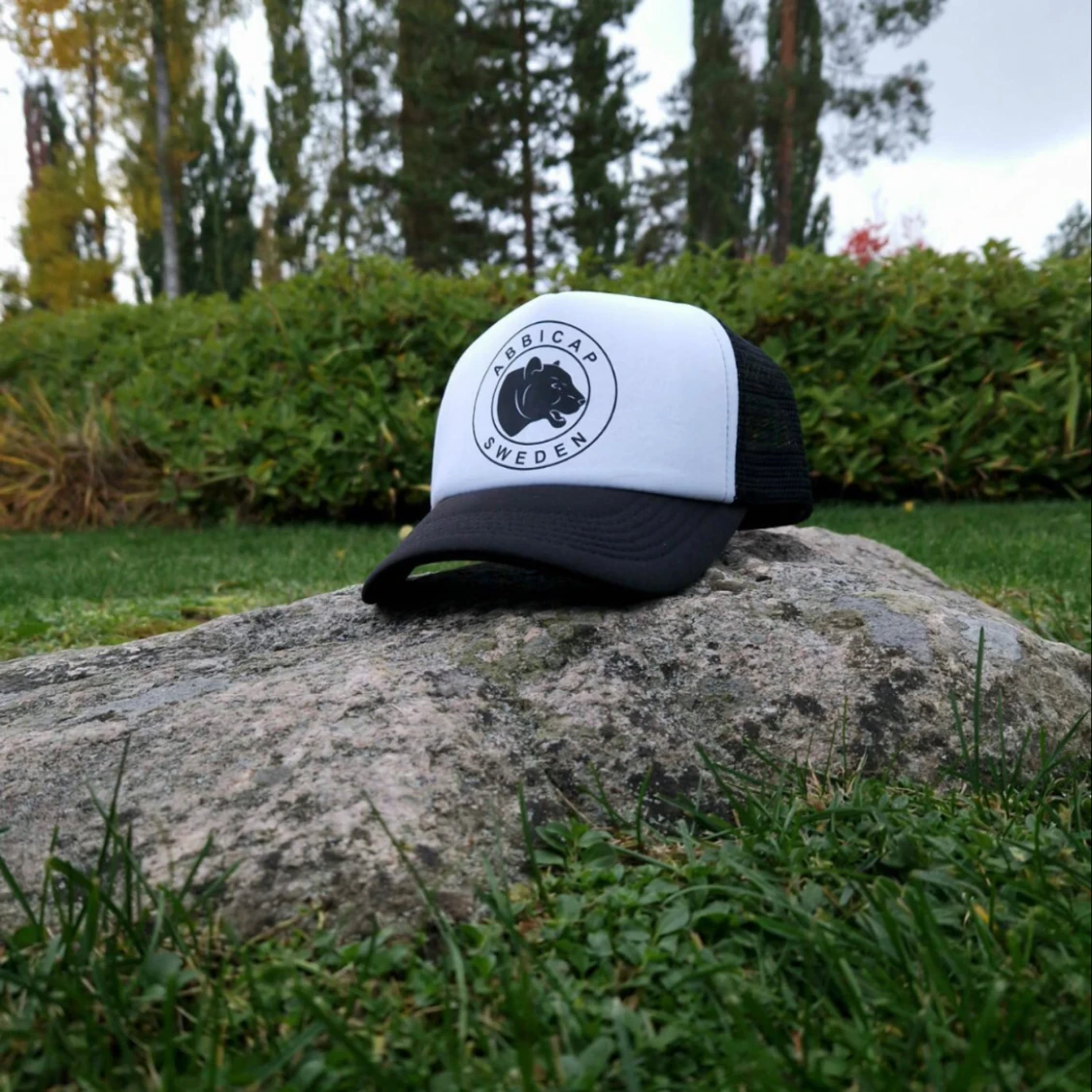 Snygg truckerkeps från AbbiCap Sweden i svart och vitt. Framsidan är vit med ett runt svart logomärke med pantermotiv, medan baksidan är i svart mesh för extra ventilation. Böjd skärm och justerbar passform. Perfekt för en cool och avslappnad stil.