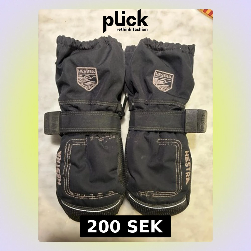Säljer ett par svarta tumvantar från Hestra med justerbart band runt handleden och dragkedja på sidan. Vantarna har broderad logga och detaljer i vitt samt greppvänlig prickstruktur i handflatan. Perfekta för kalla vinterdagar.