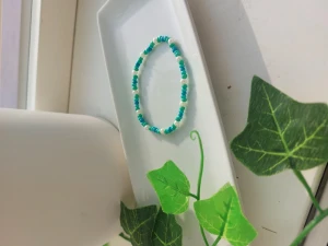 Ett turkosblått egengjort armband. 30 kr+15kr frakt🩵 Skriv mått vid köp🫶🏻