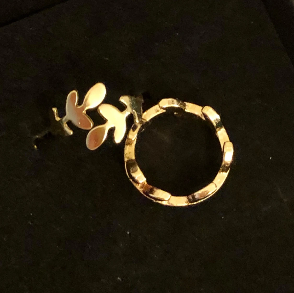 I steel ej mkt använda den ena går att reglera i storleken och den andra är stl 17 båda är i mycket fint skick. Köpta på olika butiker men tycker dem passar fint tillsammans. Den ena är 18 karat guld pläterad och den andra vet jag tyvärr ej. Men båda ska vara 100% allergi säkra