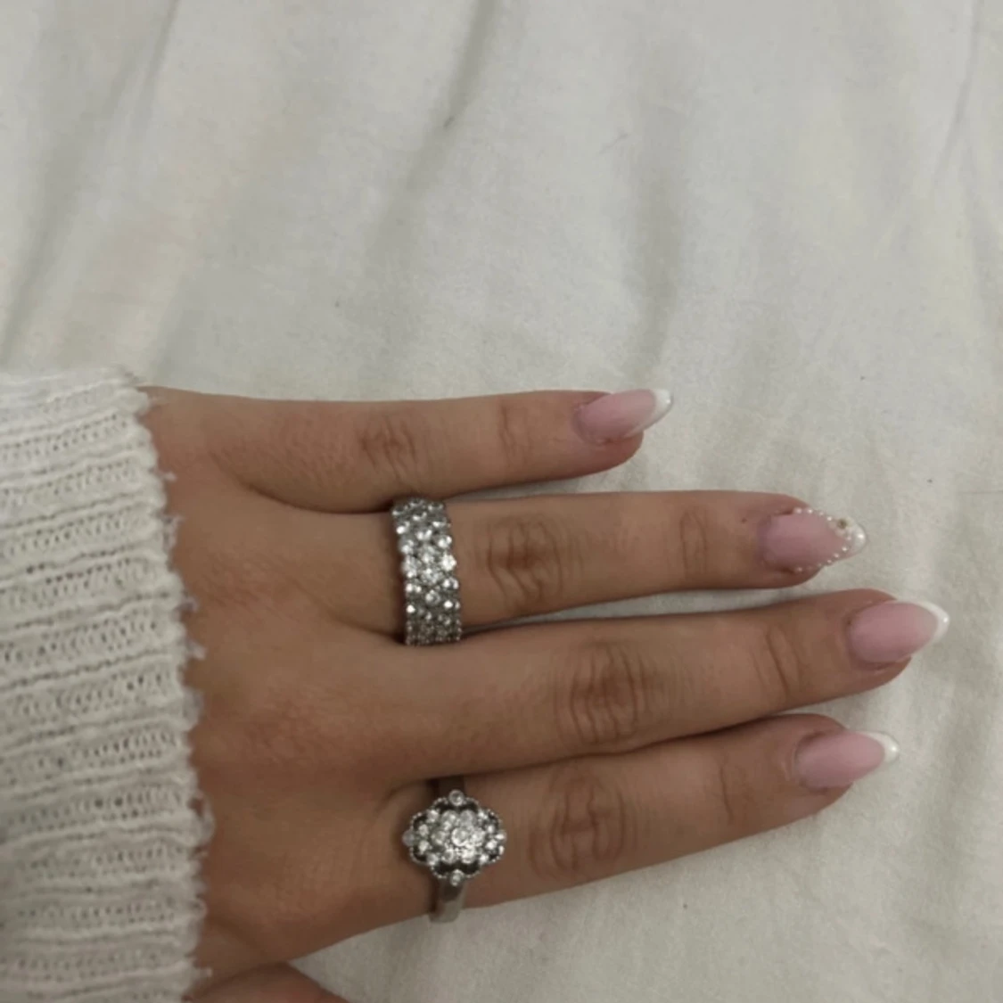 Två glittriga silverringar