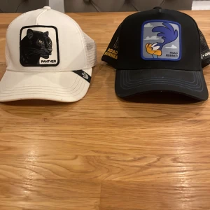 Säljer två kepsar: en vit från goorin bros med en broderad panter och en svart från Capslab med Road Runner-motiv. Båda kepsarna har nätmaterial på baksidan och justerbar passform. Den vita kepsen är andvänd men inte den andra. Väldigt bra pris.