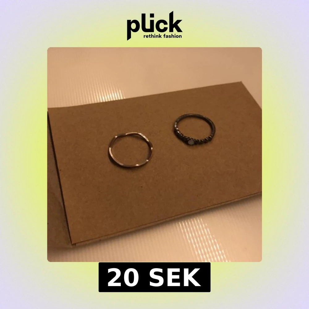 Säljer två tunna ringar, en guldig och vågig och en i mörkt silver med en vit sten. De passar varken mina fingrar eller min stil så har ingen användning för dem och hoppas de kan ge någon annan lycka :) Storleken är hyfsat normal skulle jag säga, de är lite för stora för mig dock har jag smala fingrar. 10 kr st