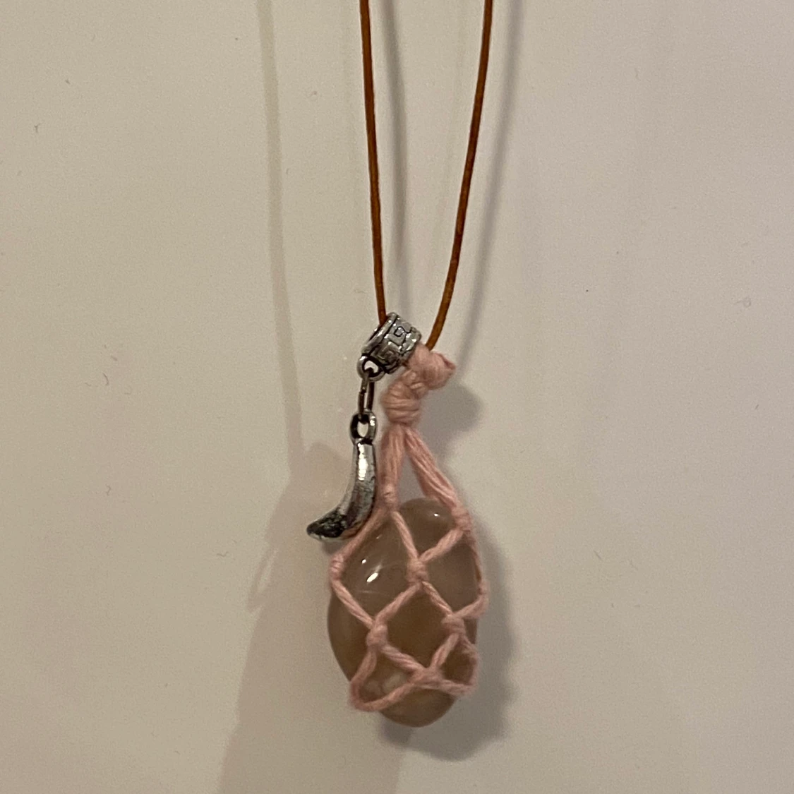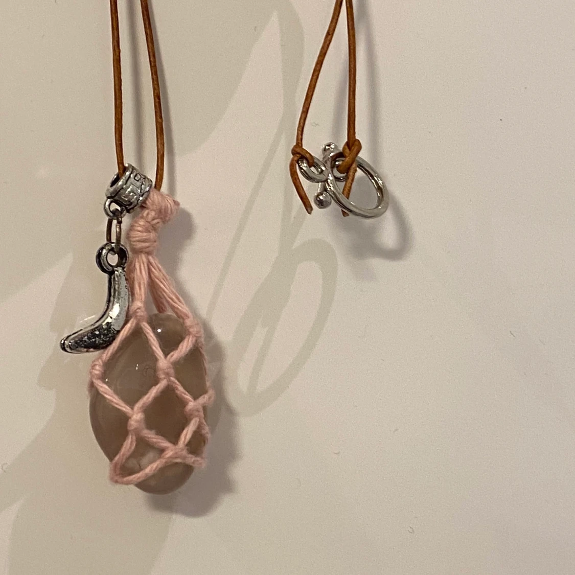 säljer dessa kristallhalsband i makramé stil. kristallerna passar perfekt och ramlar inte ur näten. tyvärr går det inte att byta kristall när den väl är i nätet men om det gärna önskas att nätet går att öppnas så är det bara att säga till så går det nog att fixa! det finns en mängd olika kristaller att välja på, om du är intresserad av någon specifik kristall kan jag nog fixa det:) (på sista bilden ser ni val av tråd, men om annan färg önskas går det att fixa!) pris varierar mycket på kristall.