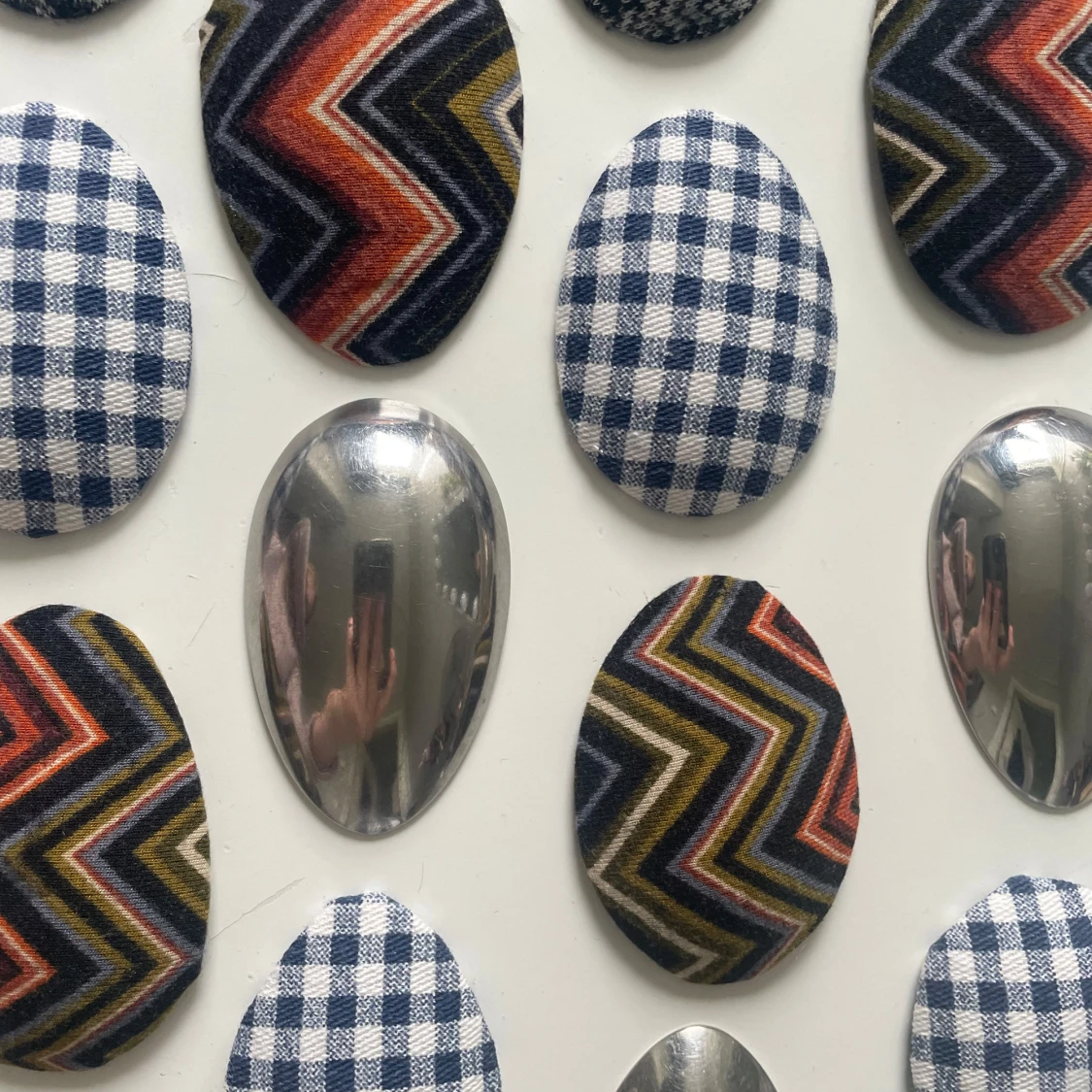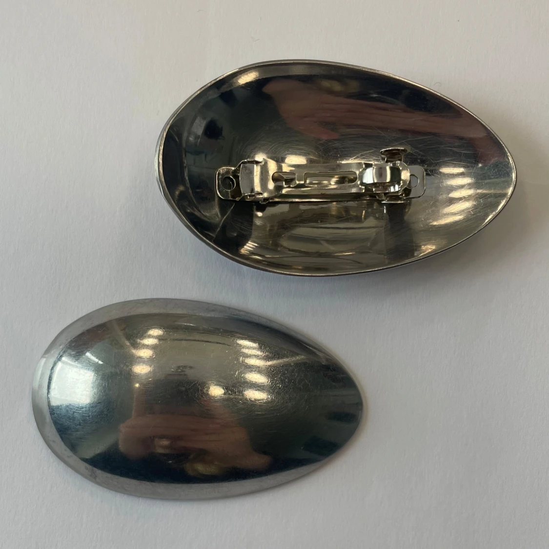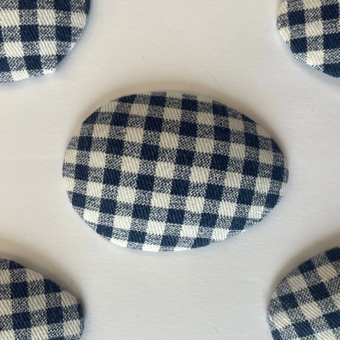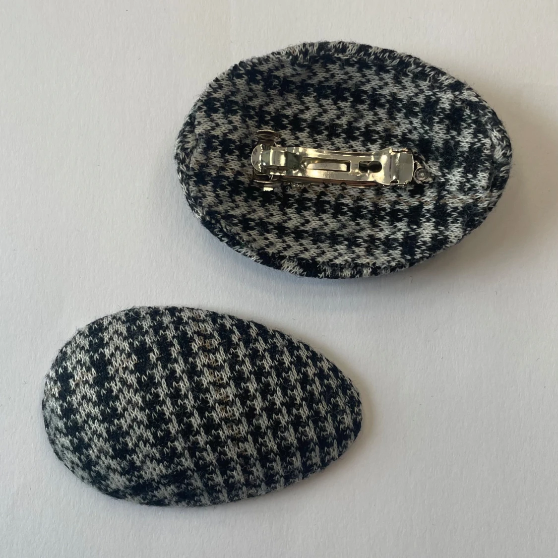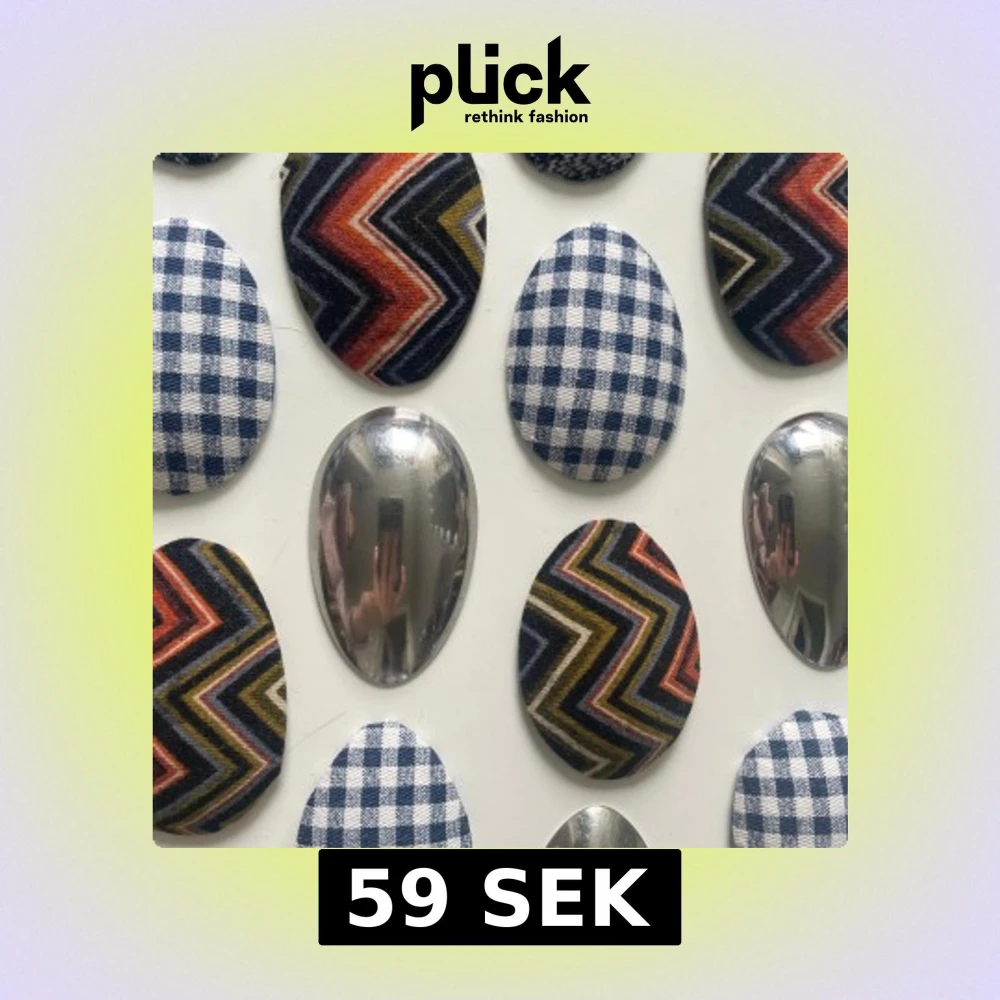 Säljer ett gäng ovala hårklämmor med olika mönster: glansig silvermetall, blåvitrutigt tyg och färgglada zickzackmönster i orange, grön och svart. Några har klassiskt hundtandsmönster i svartvitt. Perfekt för att ge din outfit en unik touch. DM för vilken kollektion som önskas!
