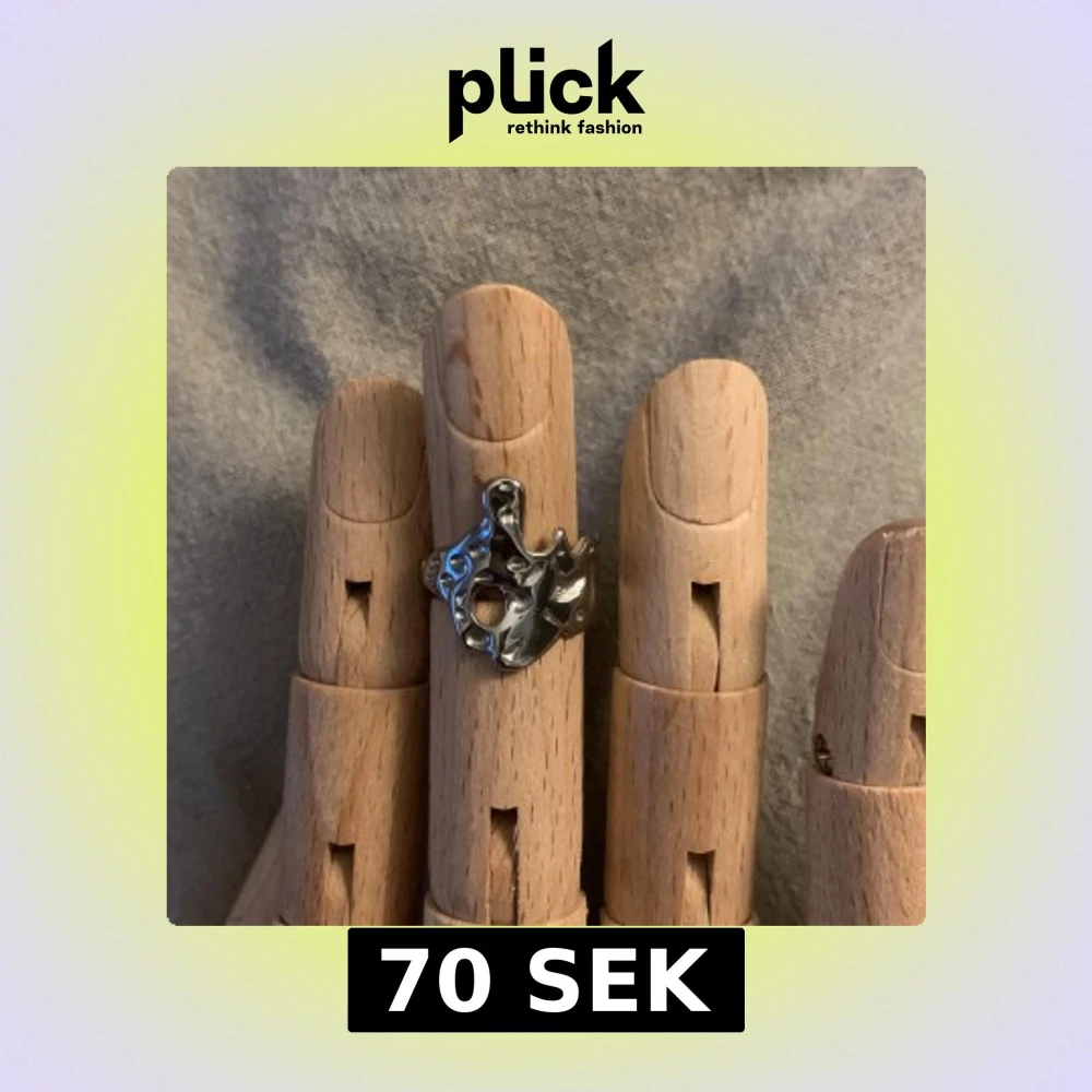 Säljer en unik ring i silver med en cool, abstrakt design. Ringen har en organisk form som ger ett konstnärligt och modernt intryck. Perfekt för dig som vill ha något annorlunda och stilfullt.