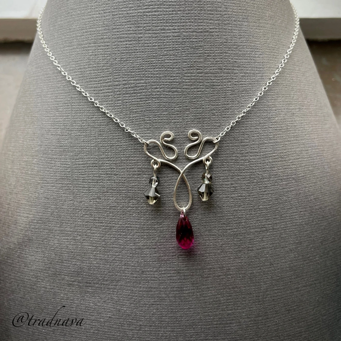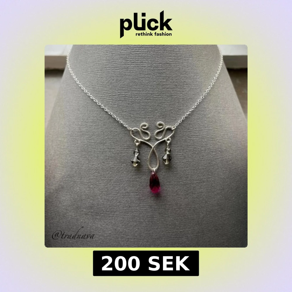 Handgjort halsband i silverpläterad koppar, smyckat med tjeckiska bicones och firepolishpärlor samt en briolette från Swarovski i färgen fuchsia. Jag kan enkelt ändra längd/storlek på mina smycken utan extra kostnad, det är bara att höra av dig!🌸