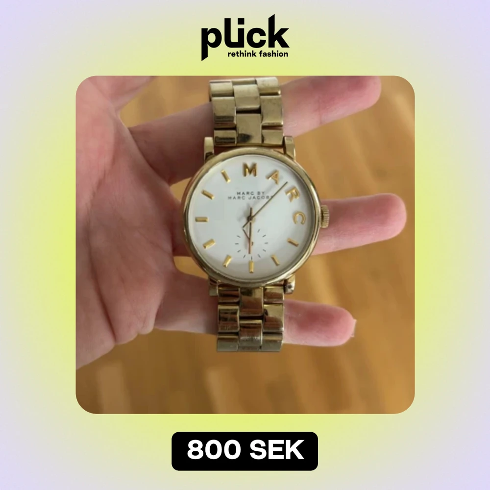Ordpris: 2500 kr Tillverkare: Marc by Marc Jacobs Modell: MBM3243 Rek. pris 2 598 kr Serie: Baker Typ: Damklocka, dressmodell Diameter: Ø 36.5 mm Tjocklek: 8.00 mm Boett: Borstat/polerat gulguldtonat stål Armband: Guldfärgat gulguldtonat stål
